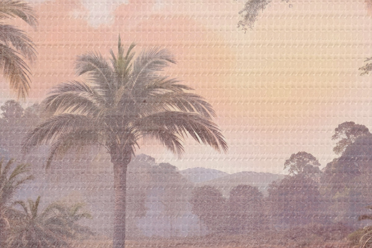 Bild Eine tropisch strukturierte Landschaft mit einem ruhigen See, umgeben von üppigen Palmen und anderem Laub Nr r42219