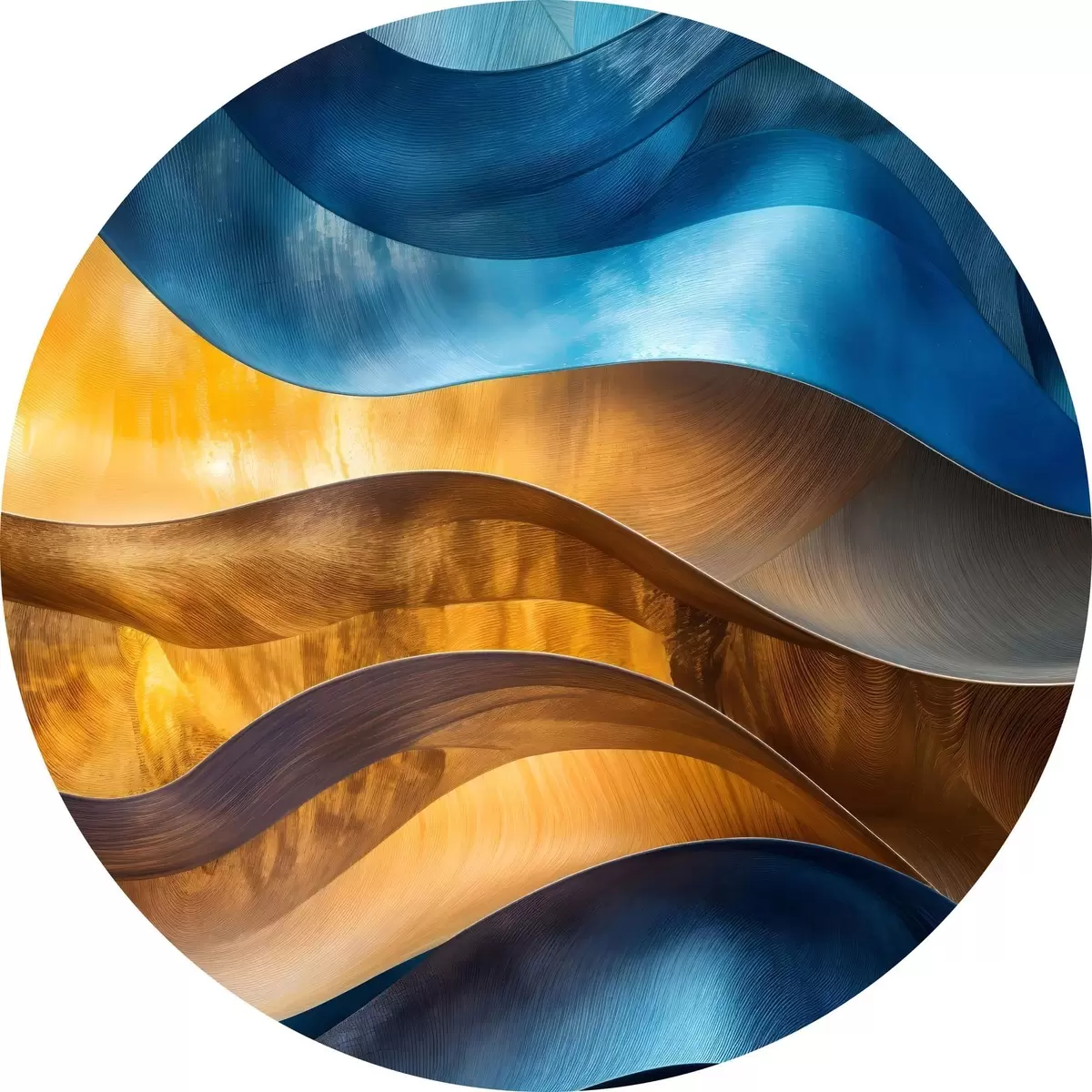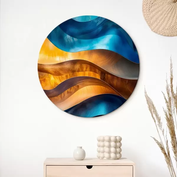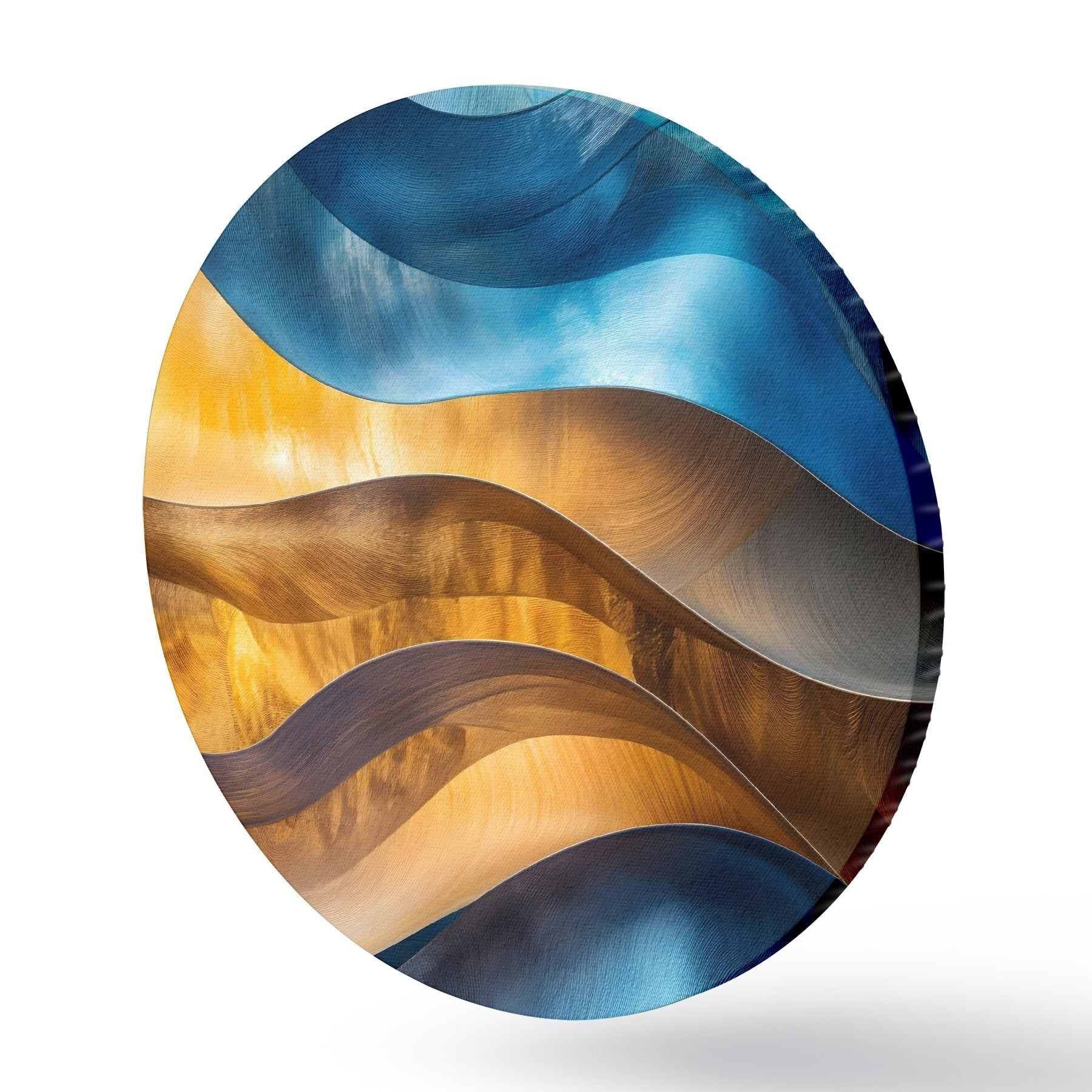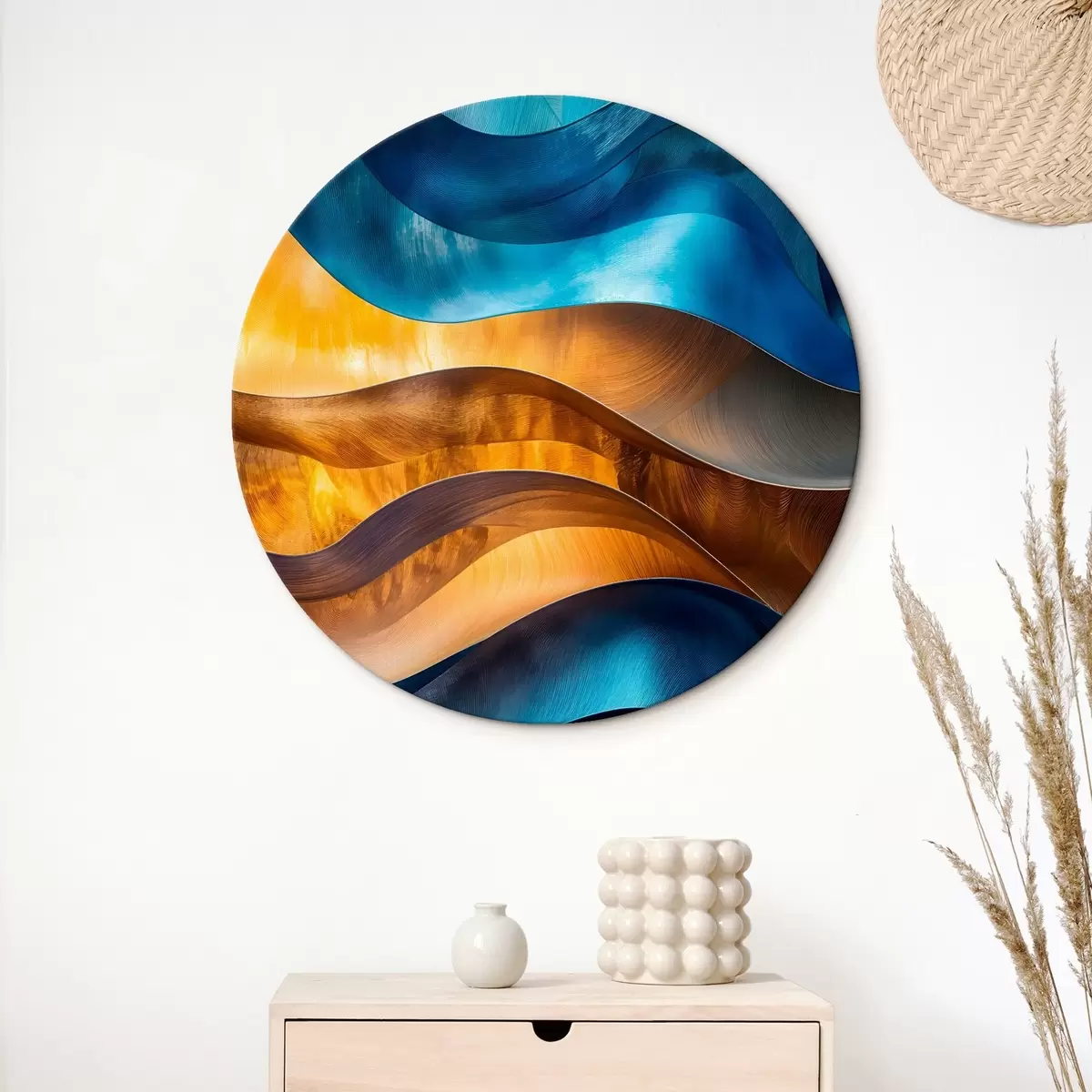 Runde Gemälde Abstrakte moderne Kunst wellenförmige Formen in Schattierungen von Blau, Orange und Braun r42224