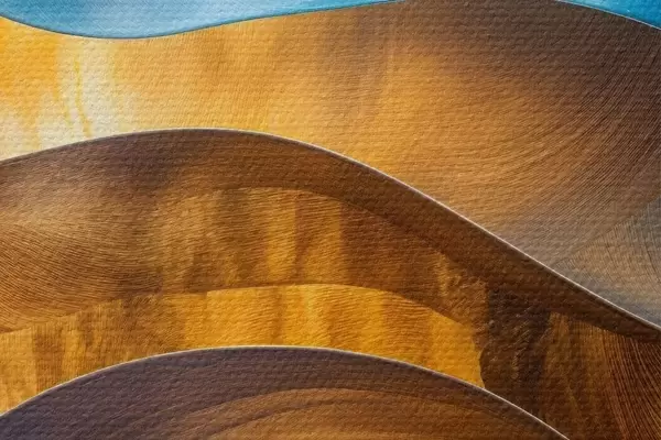 Bild Abstrakte moderne Kunst wellenförmige Formen in Schattierungen von Blau, Orange und Braun Nr r42224