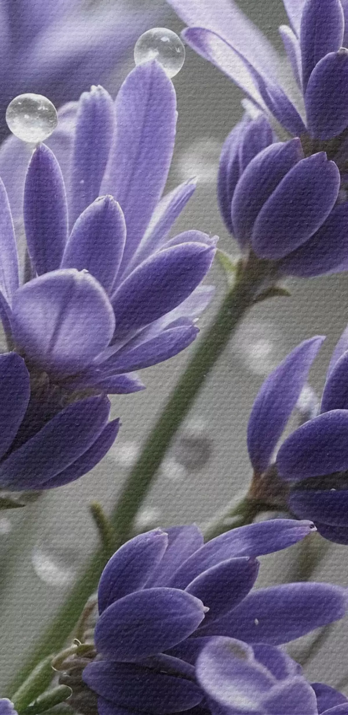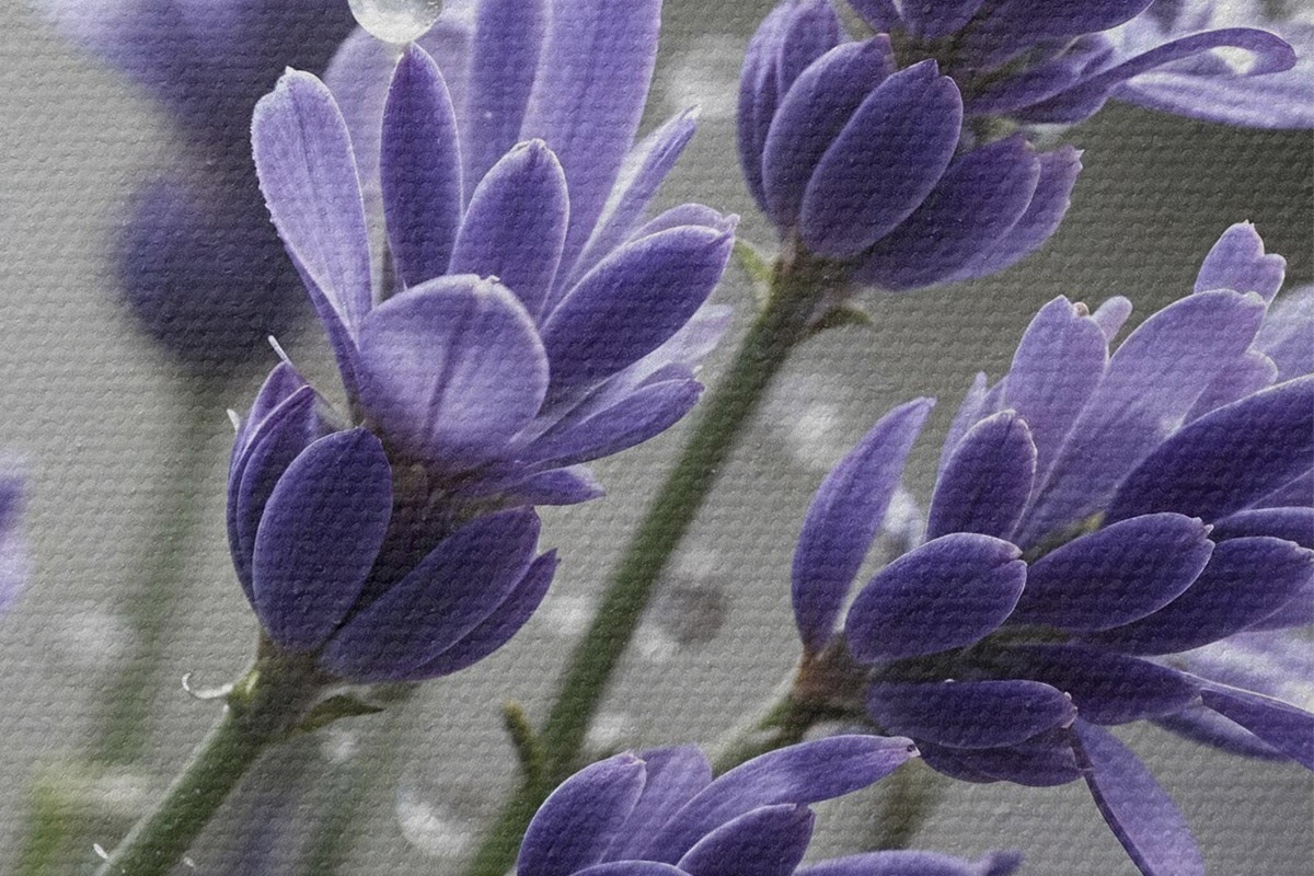Bild Lila Lavendelblüten mit Wassertropfen auf den Blütenblättern, vor einem unscharfen Hintergrund Nr r42229