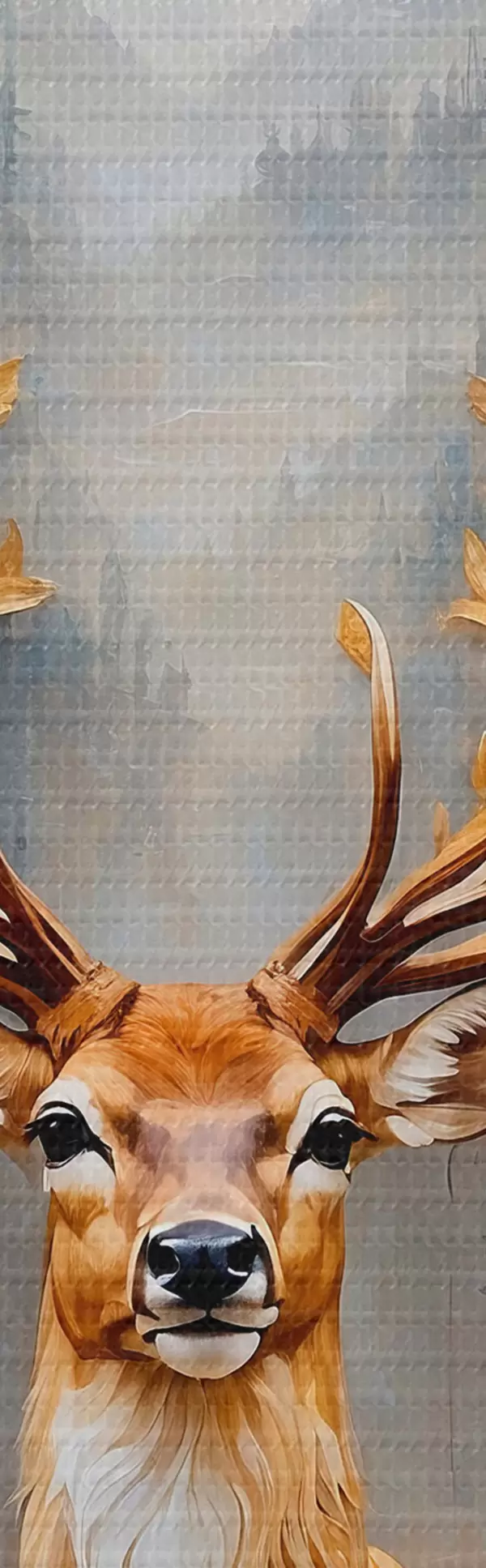 Runde Gemälde Hirsch mit großem Geweih auf Waldhintergrund r42252