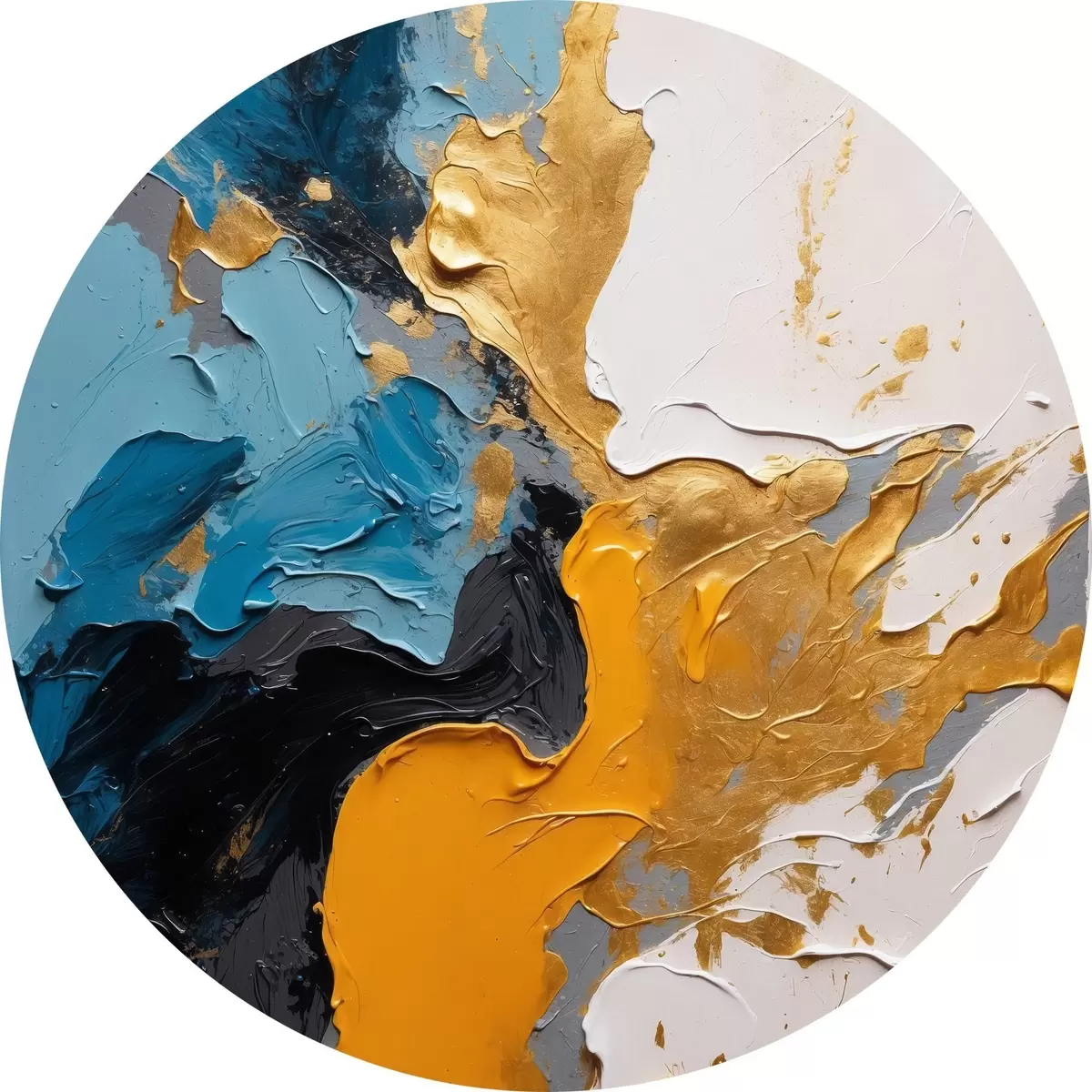Runde Gemälde Abstrakte Malerei mit blauen, weißen und gelben Farben r42254