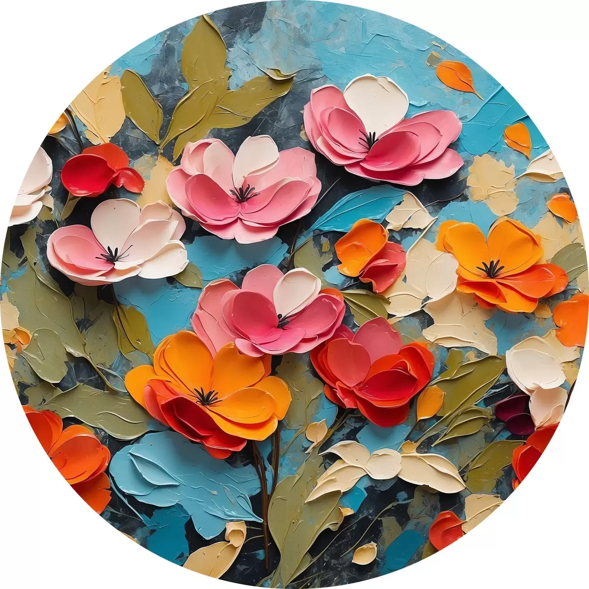Runde Gemälde Blumen und Blätter auf blauem Hintergrund r42255