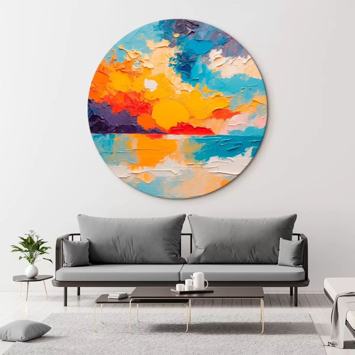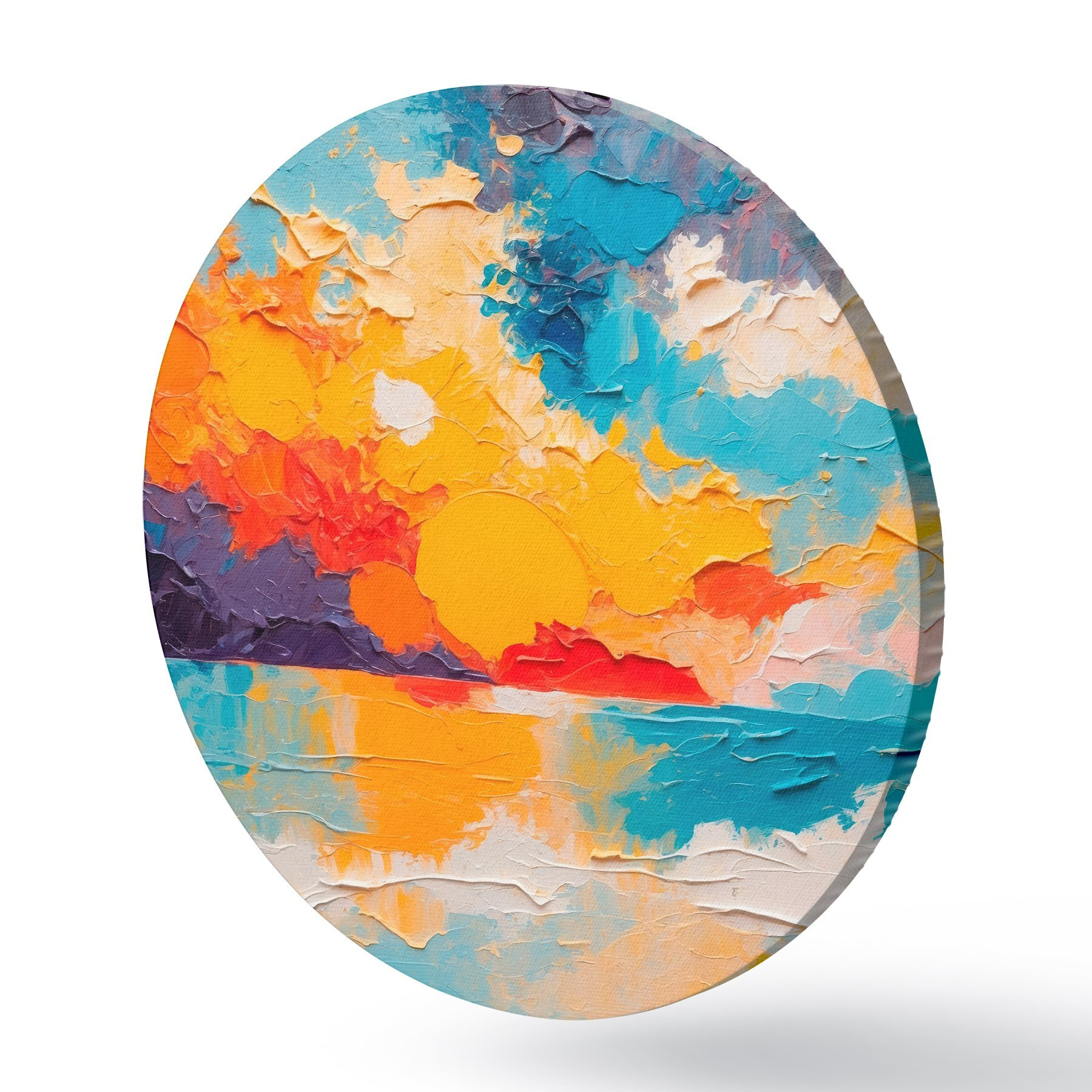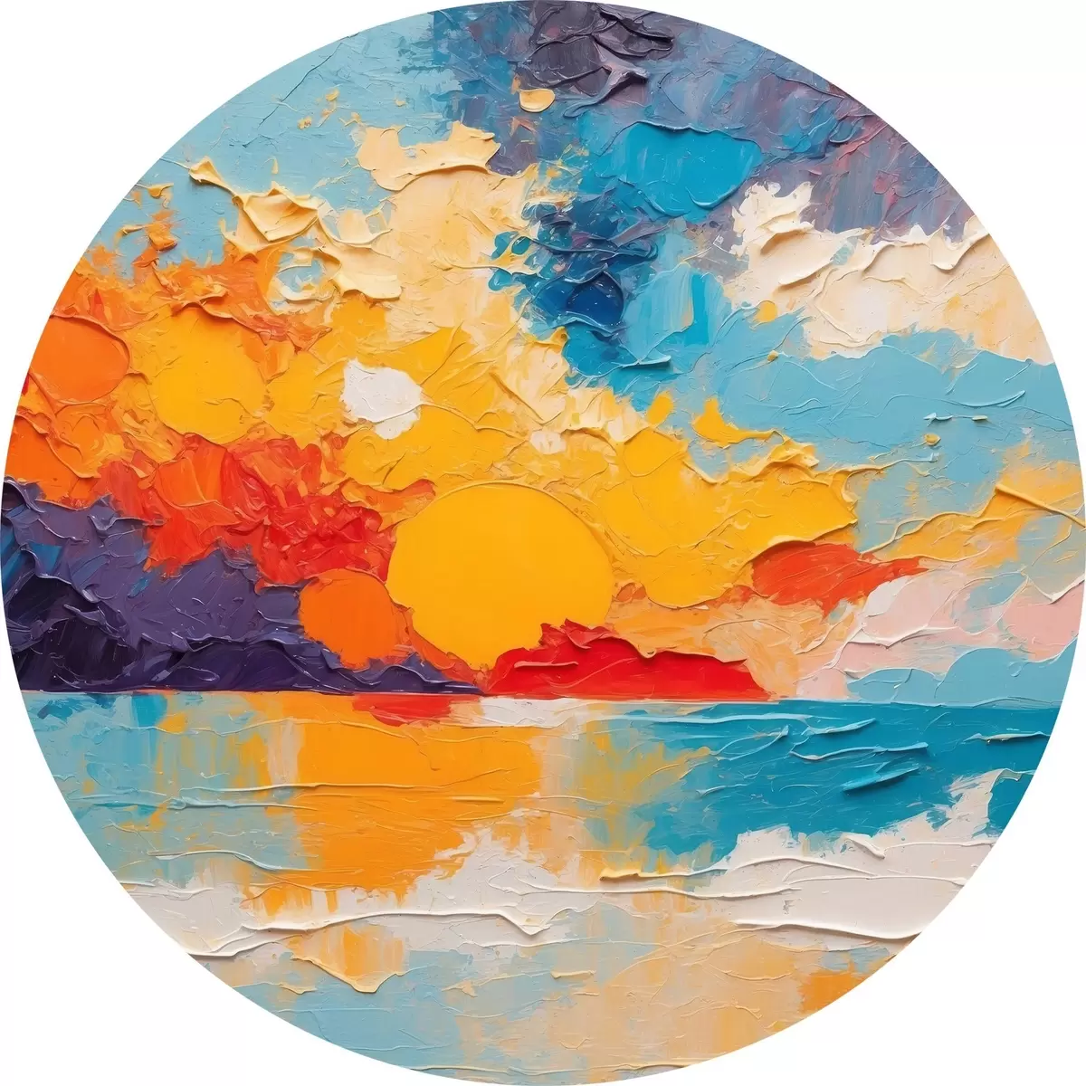 Runde Gemälde Blick auf Meer und Sonne im Stil eines Ölgemäldes r42258