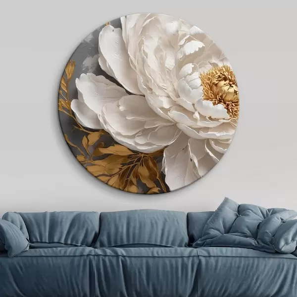 Runde Gemälde Weiße Pfingstrose auf grauem Hintergrund r42260