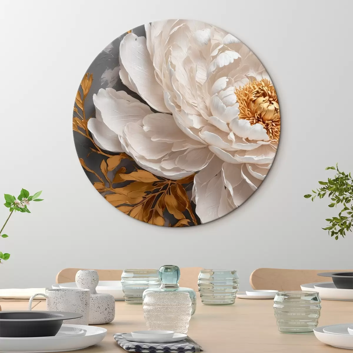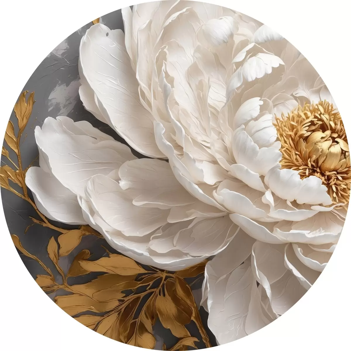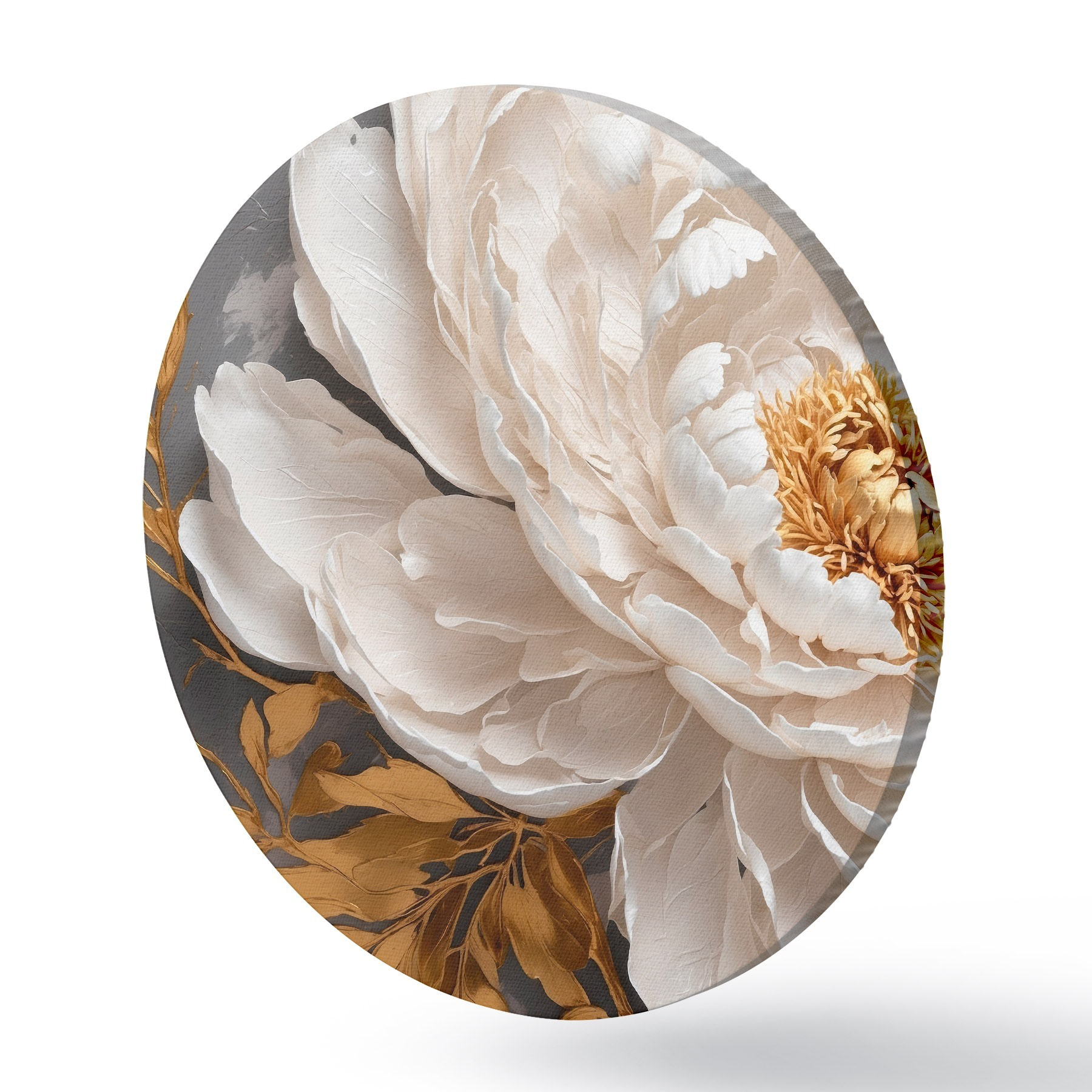 Runde Gemälde Weiße Pfingstrose auf grauem Hintergrund r42260