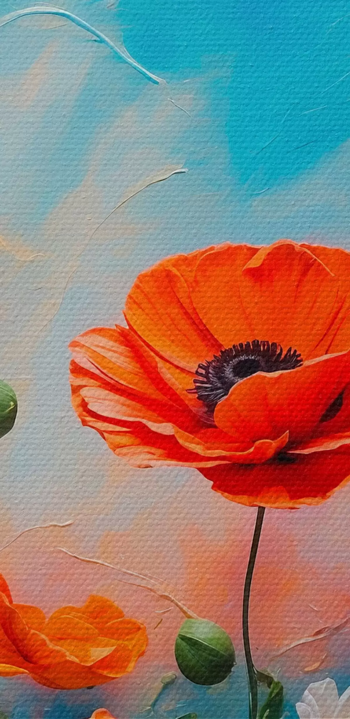 Bild Gänseblümchen und Mohnblumen auf blauem Hintergrund Nr r42261