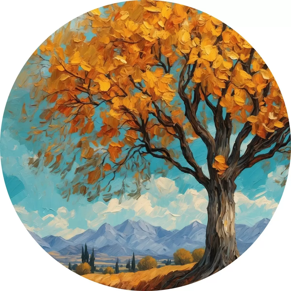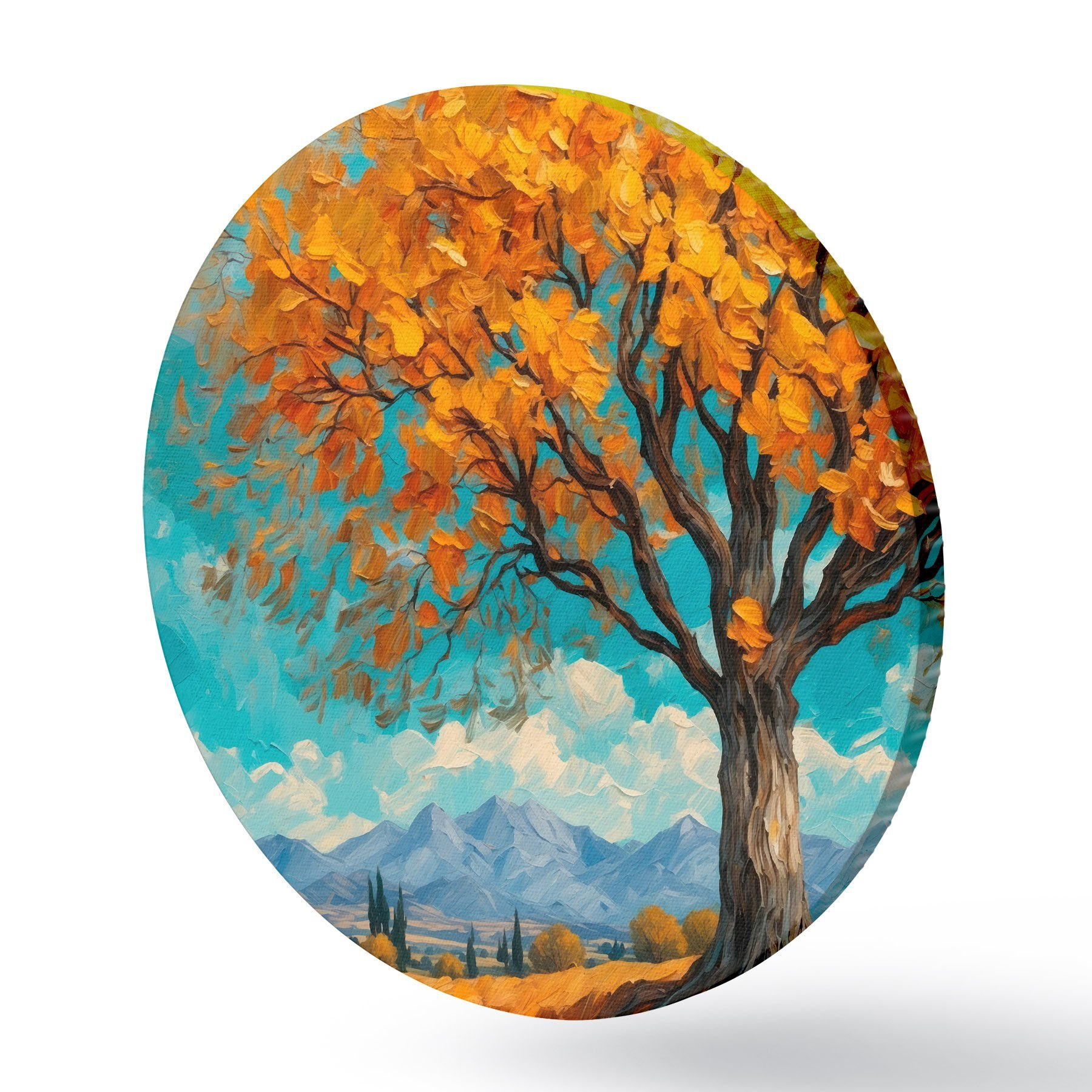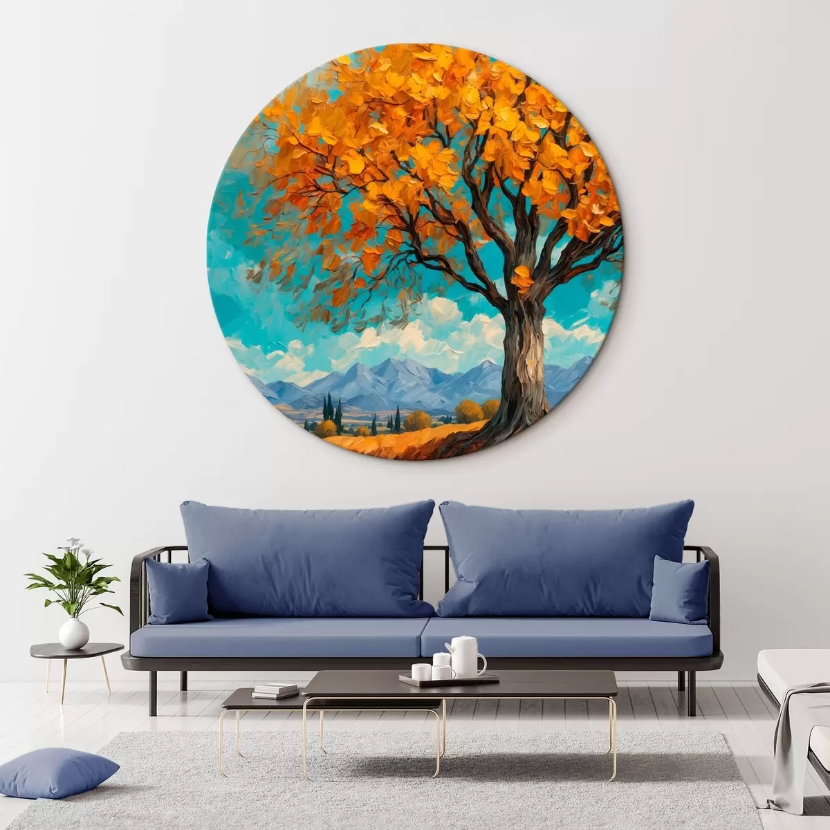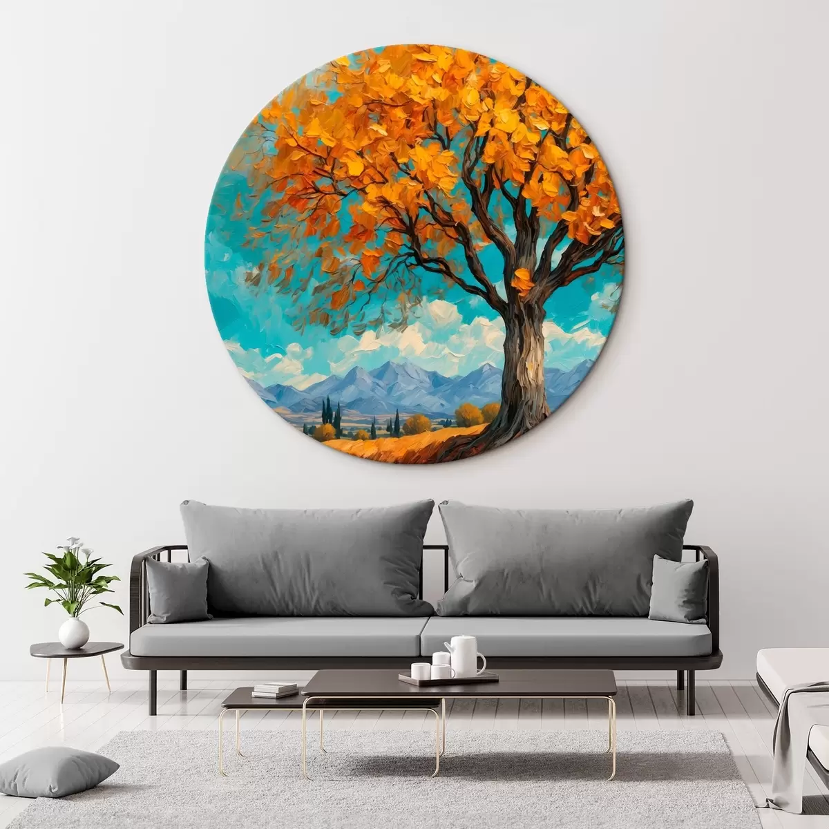 Runde Gemälde Baum auf dem Gipfel eines Hügels r42263