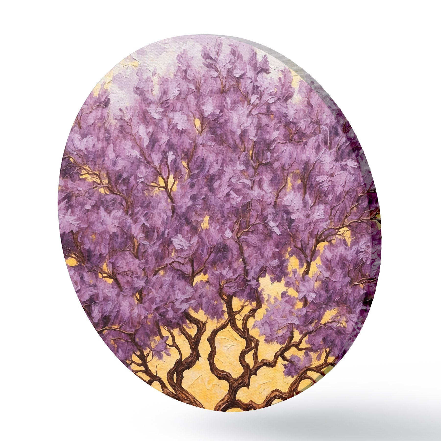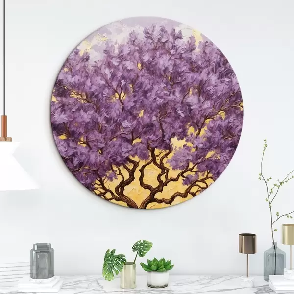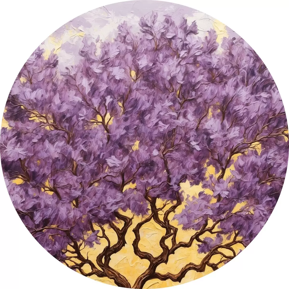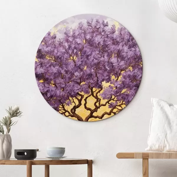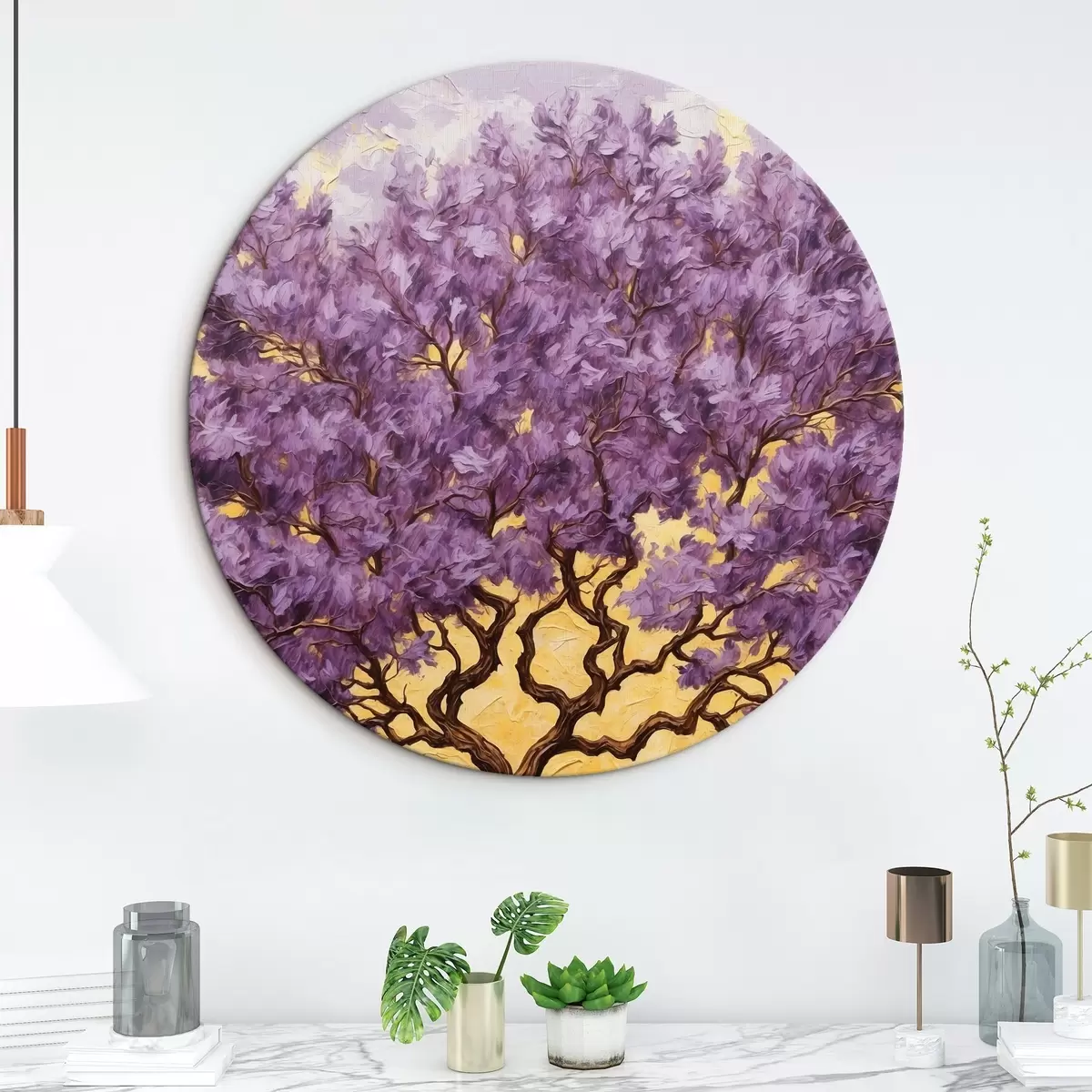 Runde Gemälde Lila Baum auf gelb-phyolotolischem Hintergrund r42272