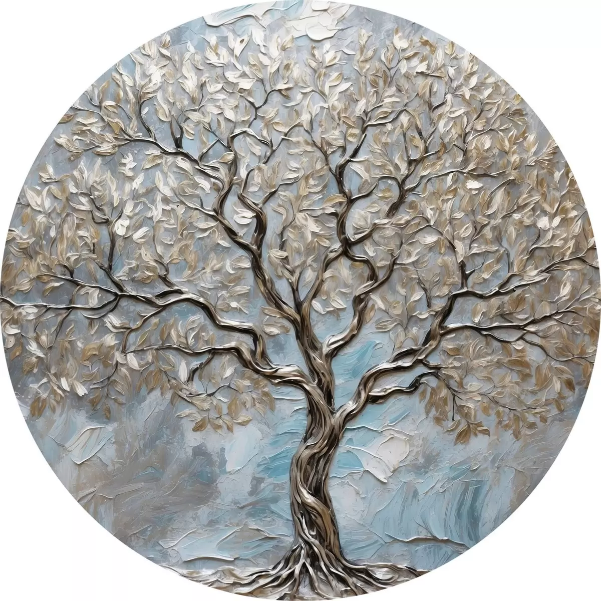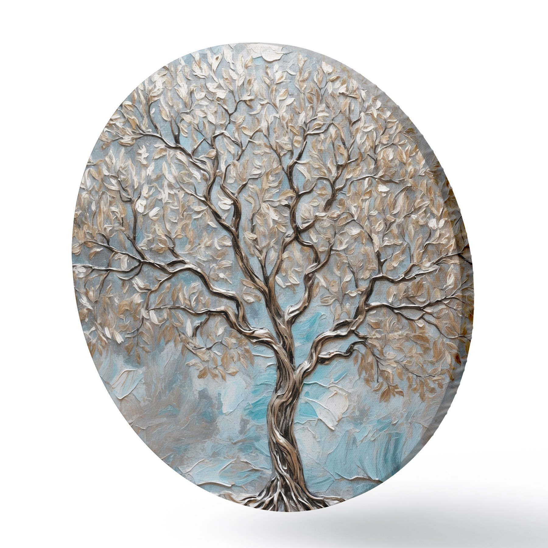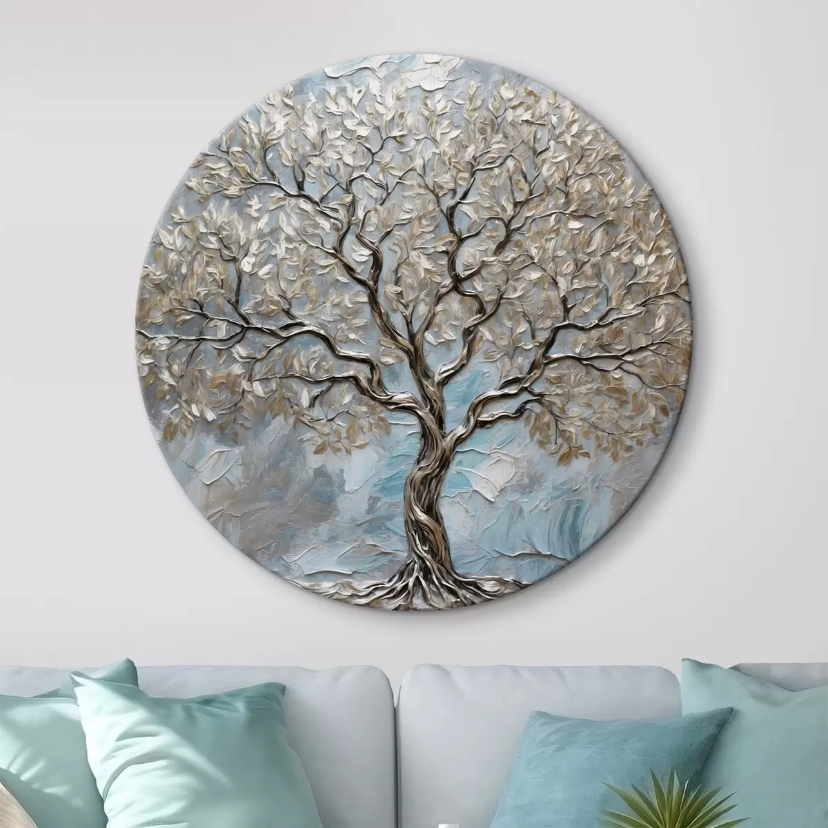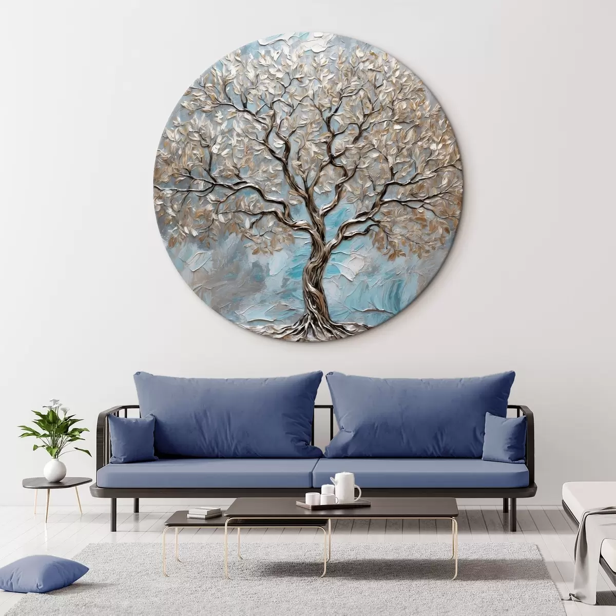 Runde Gemälde Silberner Baum auf blau-grauem Hintergrund r42273