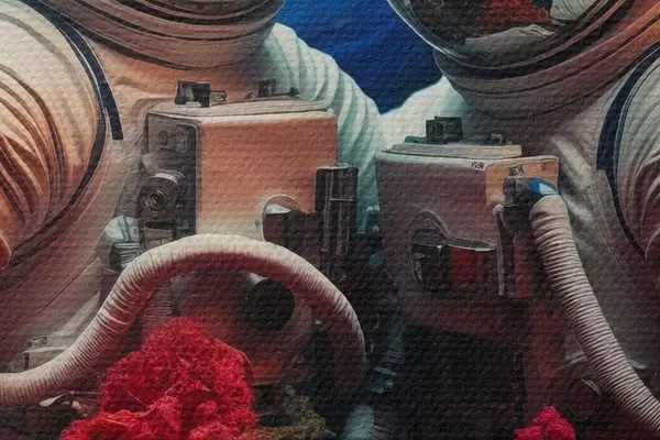 Um die Leinwand auf Keilrahmen zu spannen, ohne das Bild zu beschädigen, verwenden wir ein gespiegeltes Bild.
