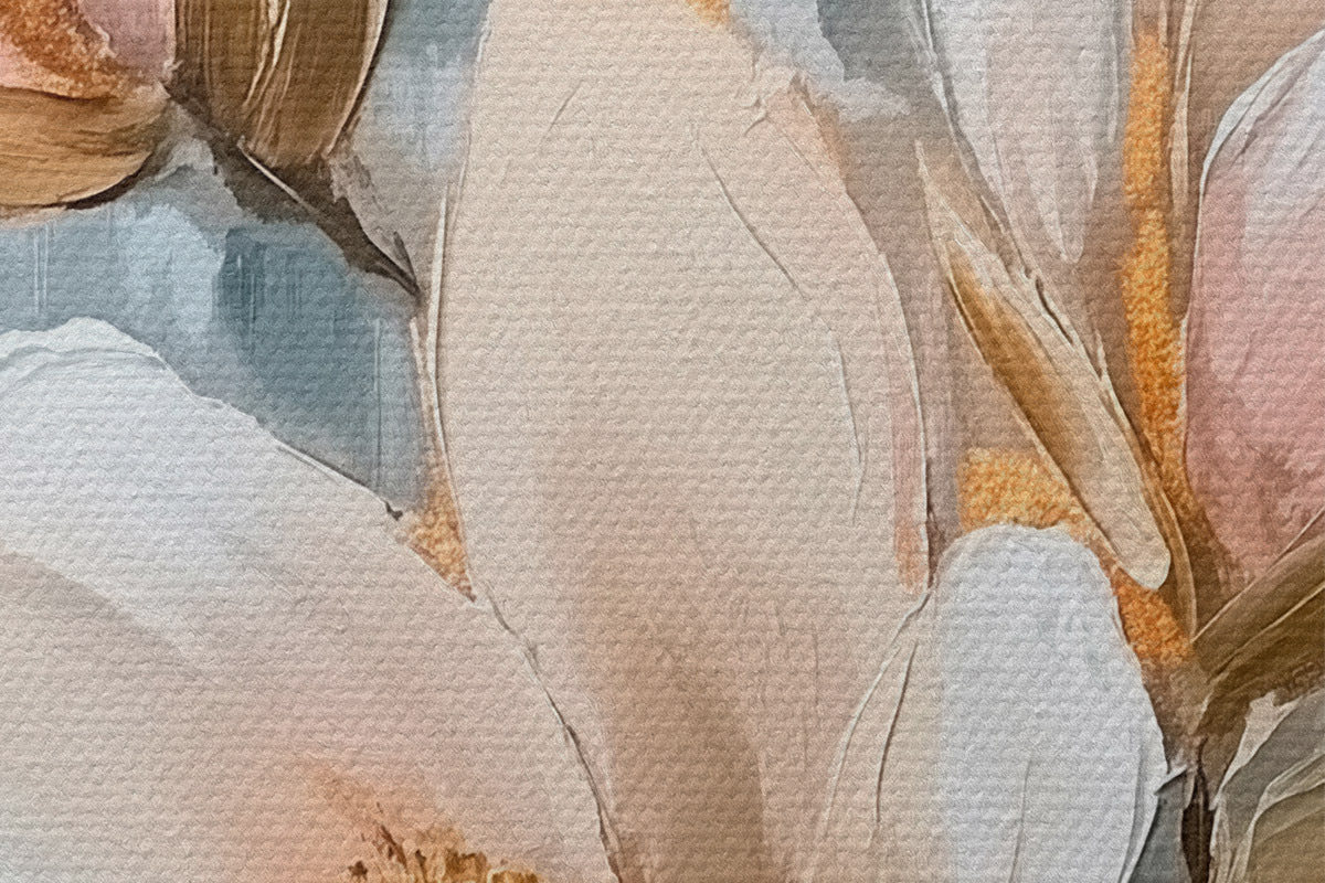 Drei Materialtypen stehen zur Verfügung: Economic Canvas - ein dichtes und haltbares Material für den Digitaldruck, identisch mit Malerleinwand, wasserfeste Oberfläche, realistische Wiedergabe von Details, mittelkörniges Material. Premium Canvas - die Textur ähnelt der einer Malerleinwand (verwobene kleine Fäden). Weiche, detaillierte Wiedergabe des Bildes auf einer matten Oberfläche. Eco-Premium - hochwertiges Gewebe aus 100% Baumwolle. Dank der natürlichen Baumwollfasern ist das Material langlebig und verschleißfest. Hervorragende Farbwiedergabe und Detailtreue.