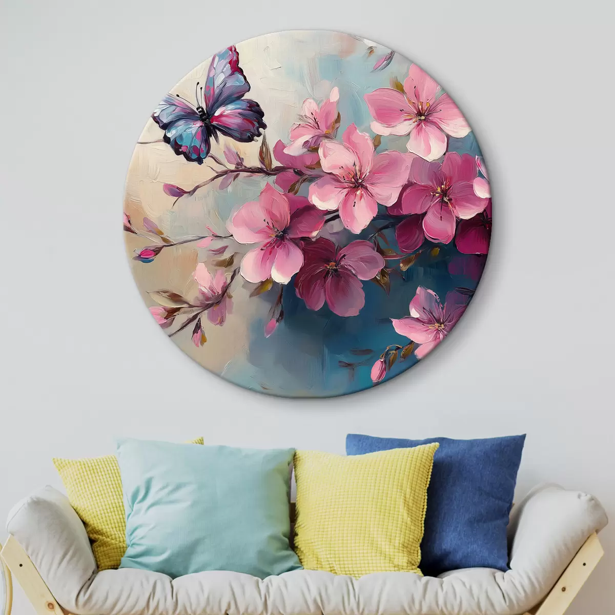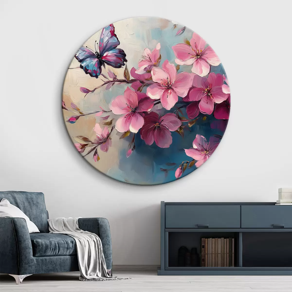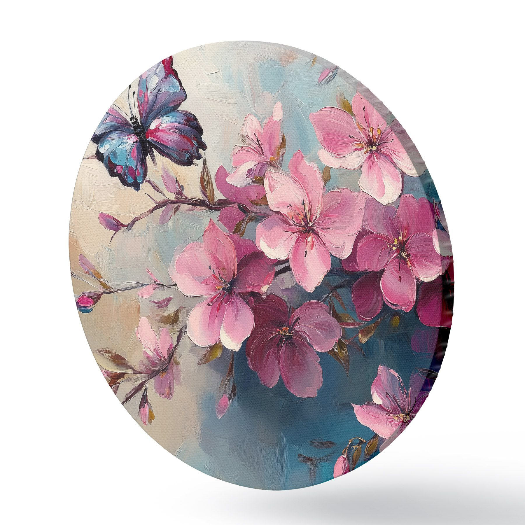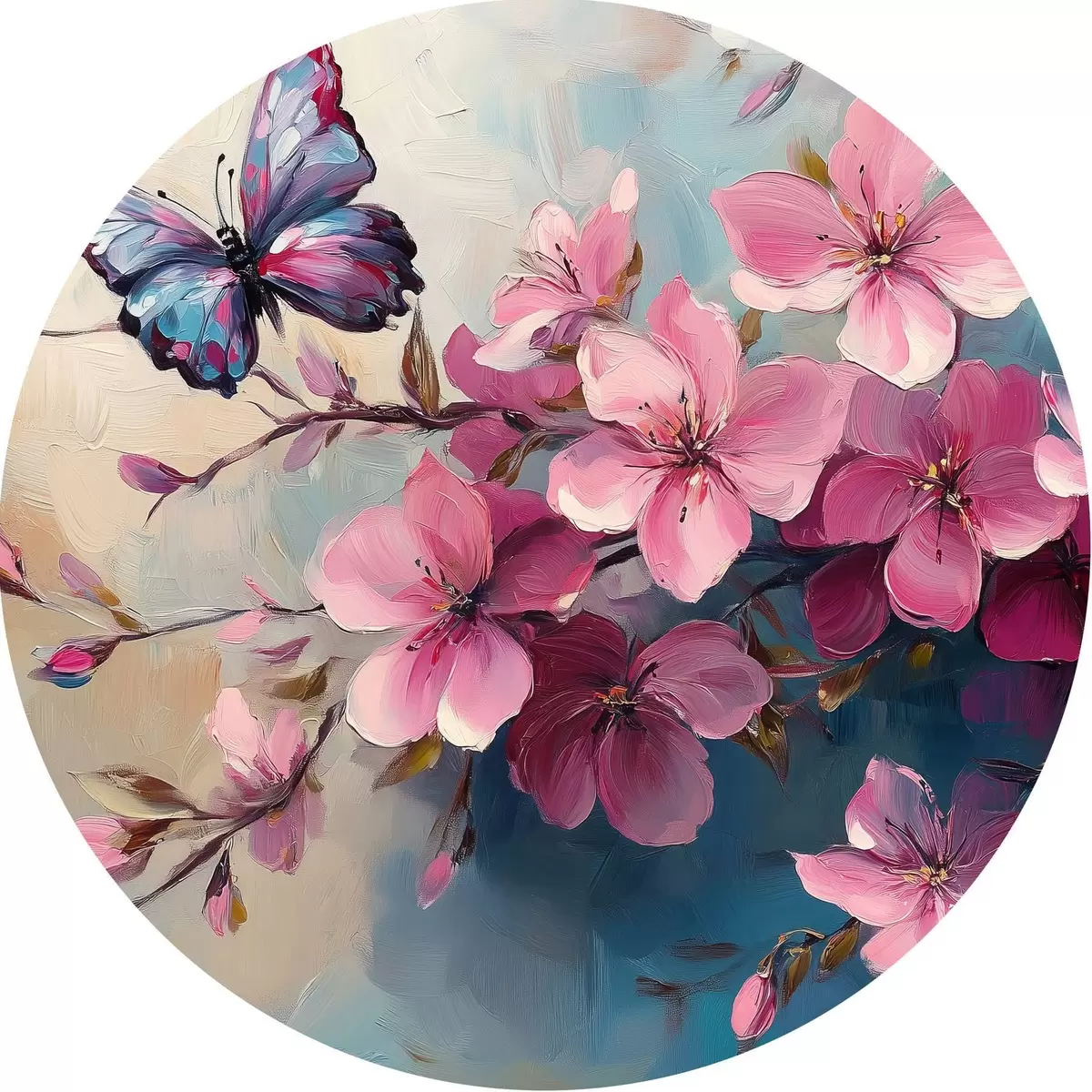 Runde Gemälde Rosa Blumen und Schmetterling r42320