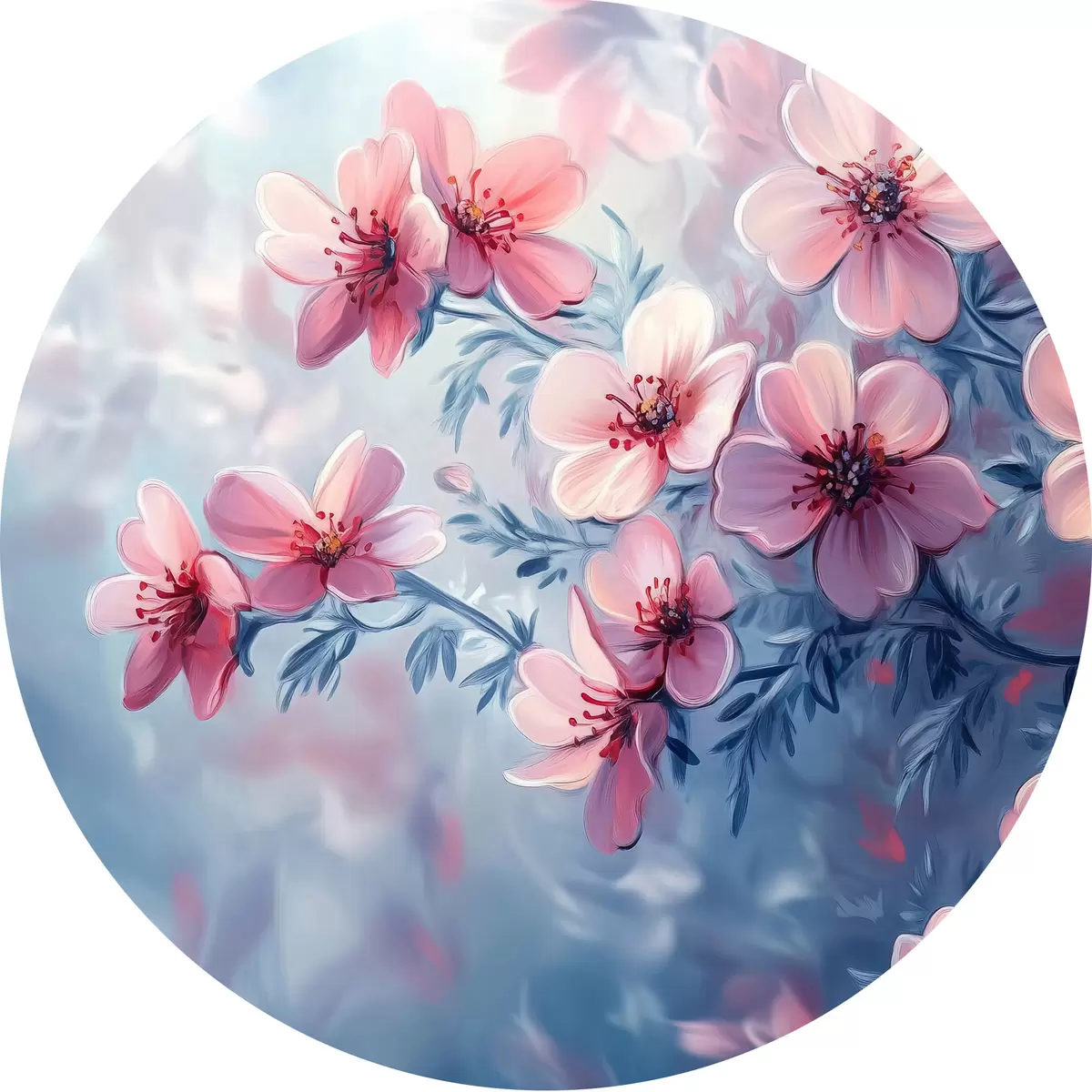 Runde Gemälde Zartrosa Blüten r42322