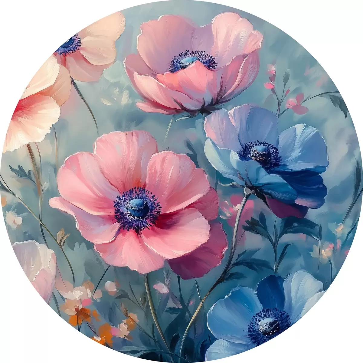 Runde Gemälde Rosa Wildblumen r42326