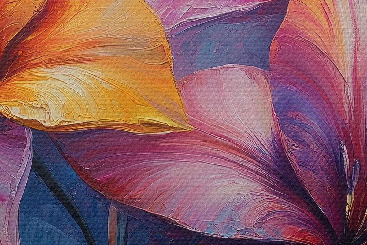 Drei Materialtypen stehen zur Verfügung: Economic Canvas - ein dichtes und haltbares Material für den Digitaldruck, identisch mit Malerleinwand, wasserfeste Oberfläche, realistische Wiedergabe von Details, mittelkörniges Material. Premium Canvas - die Textur ähnelt der einer Malerleinwand (verwobene kleine Fäden). Weiche, detaillierte Wiedergabe des Bildes auf einer matten Oberfläche. Eco-Premium - hochwertiges Gewebe aus 100% Baumwolle. Dank der natürlichen Baumwollfasern ist das Material langlebig und verschleißfest. Hervorragende Farbwiedergabe und Detailtreue.