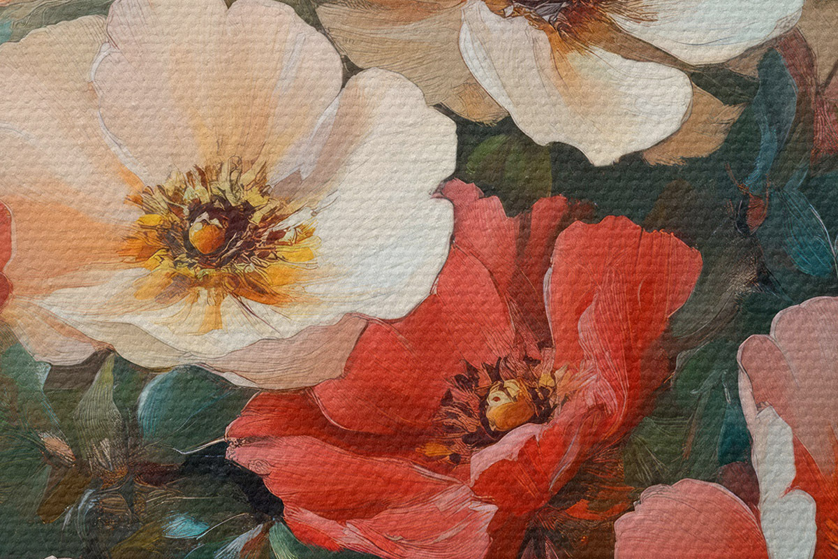 Drei Materialtypen stehen zur Verfügung: Economic Canvas - ein dichtes und haltbares Material für den Digitaldruck, identisch mit Malerleinwand, wasserfeste Oberfläche, realistische Wiedergabe von Details, mittelkörniges Material. Premium Canvas - die Textur ähnelt der einer Malerleinwand (verwobene kleine Fäden). Weiche, detaillierte Wiedergabe des Bildes auf einer matten Oberfläche. Eco-Premium - hochwertiges Gewebe aus 100% Baumwolle. Dank der natürlichen Baumwollfasern ist das Material langlebig und verschleißfest. Hervorragende Farbwiedergabe und Detailtreue.