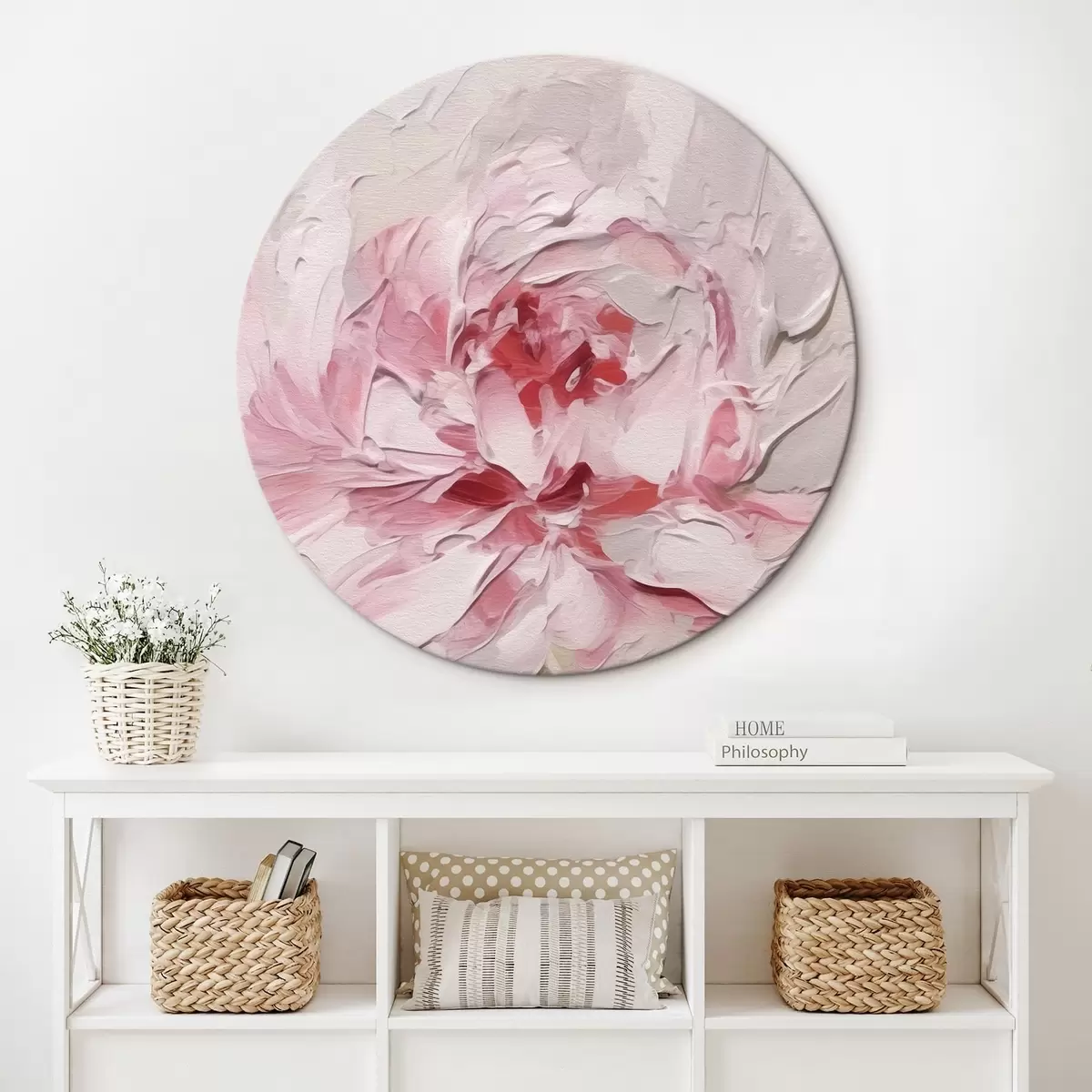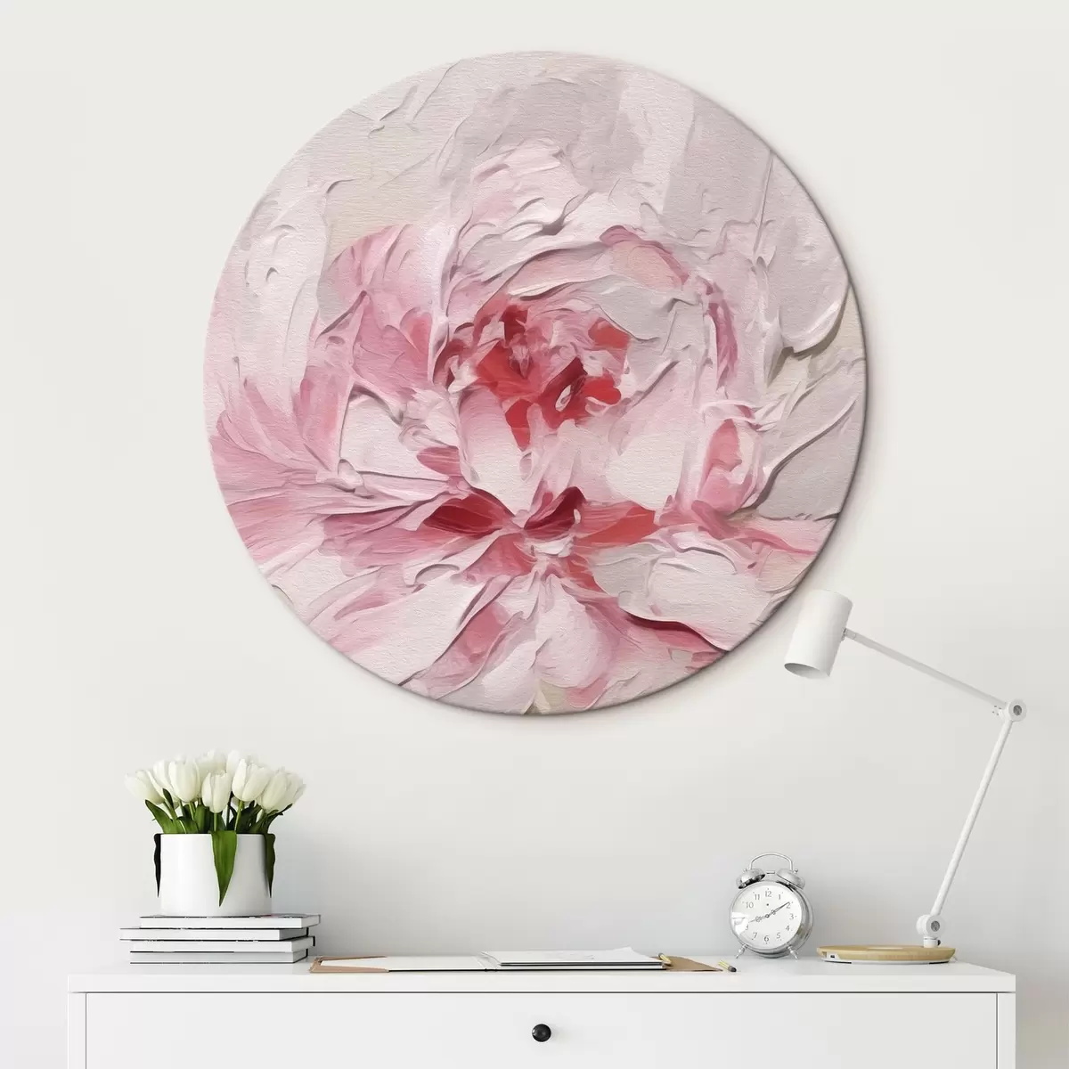 Runde Gemälde Rosa Pfingstrose r42336