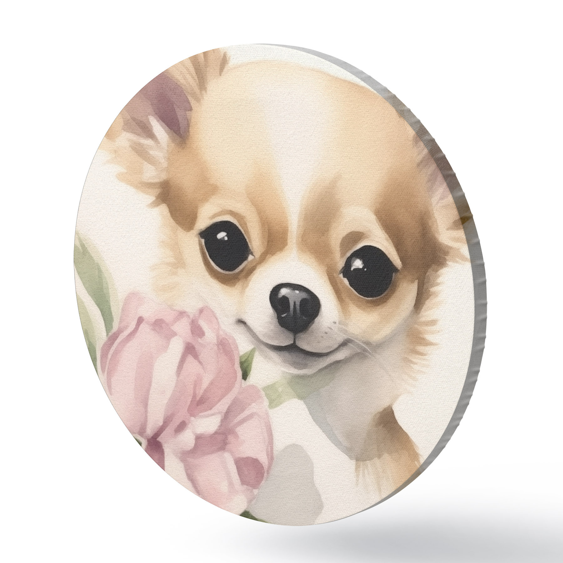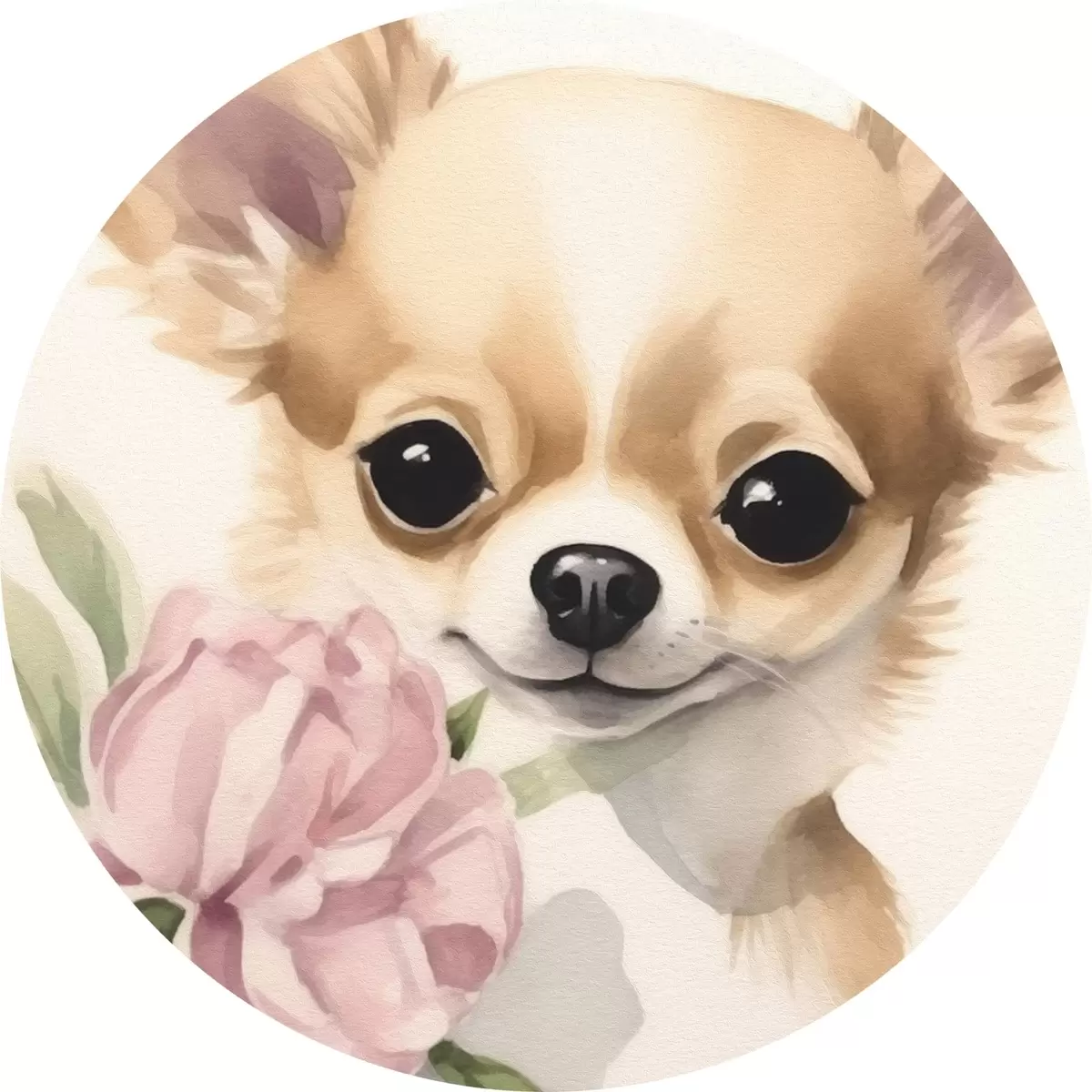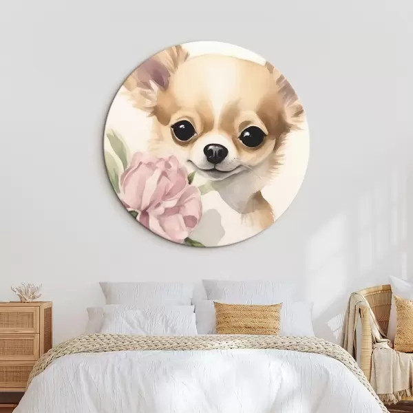 Runde Gemälde Chihuahua und Blume r42341