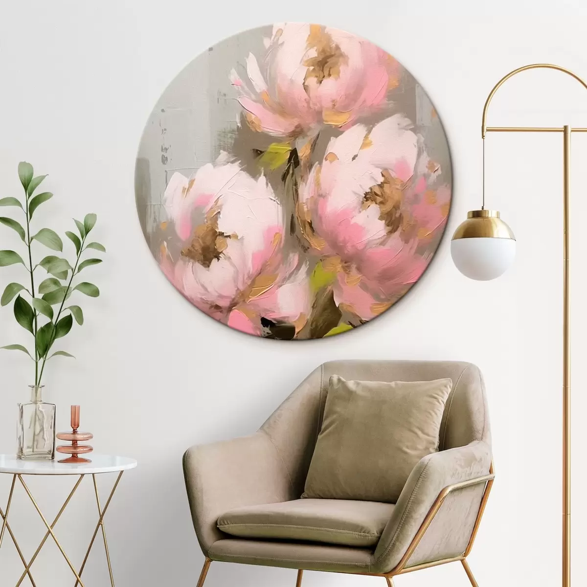 Runde Gemälde Drei Pfingstrosenblüten r42349