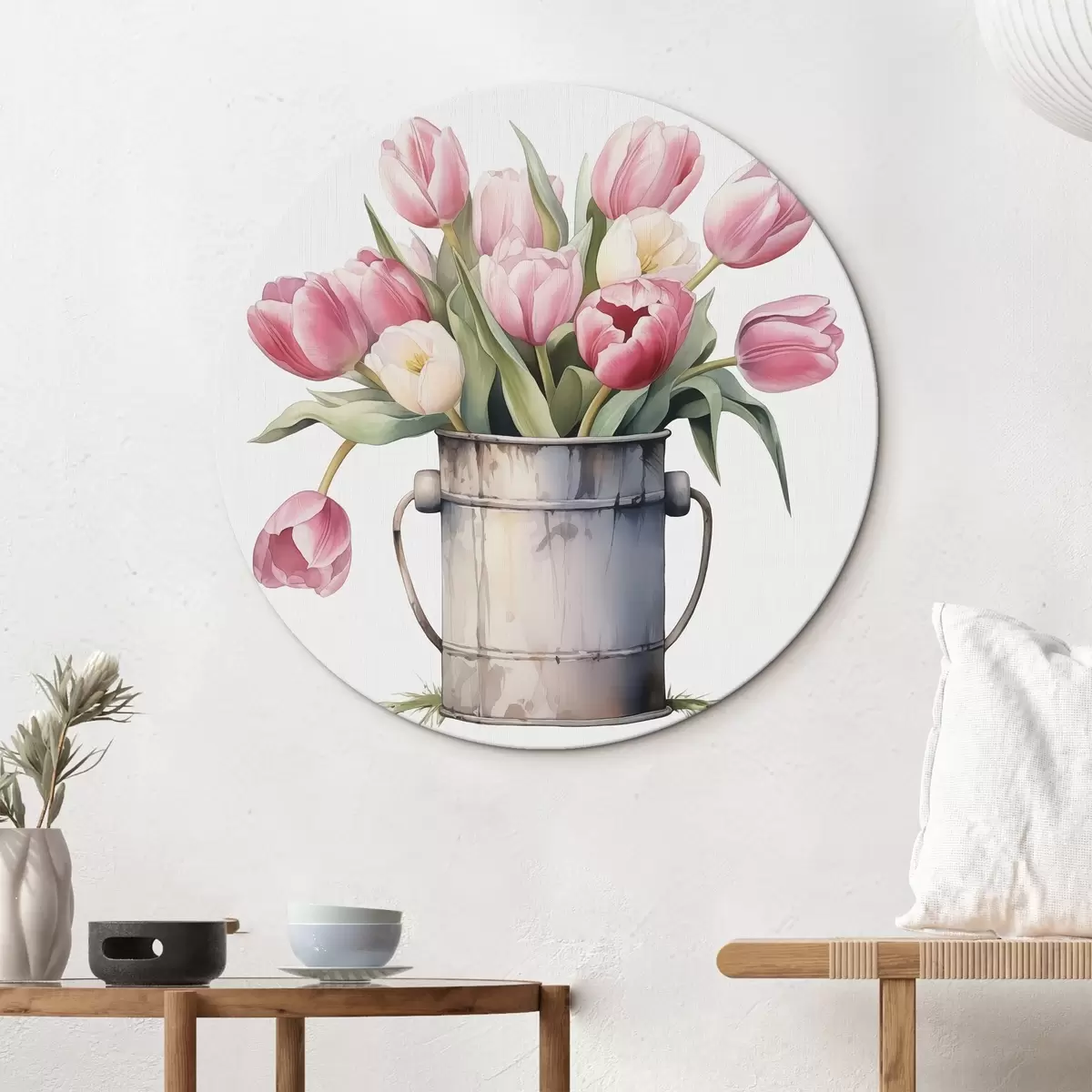 Runde Gemälde Blumenstrauß von Tulpen in einem Eimer Nachahmung von Aquarell r42353