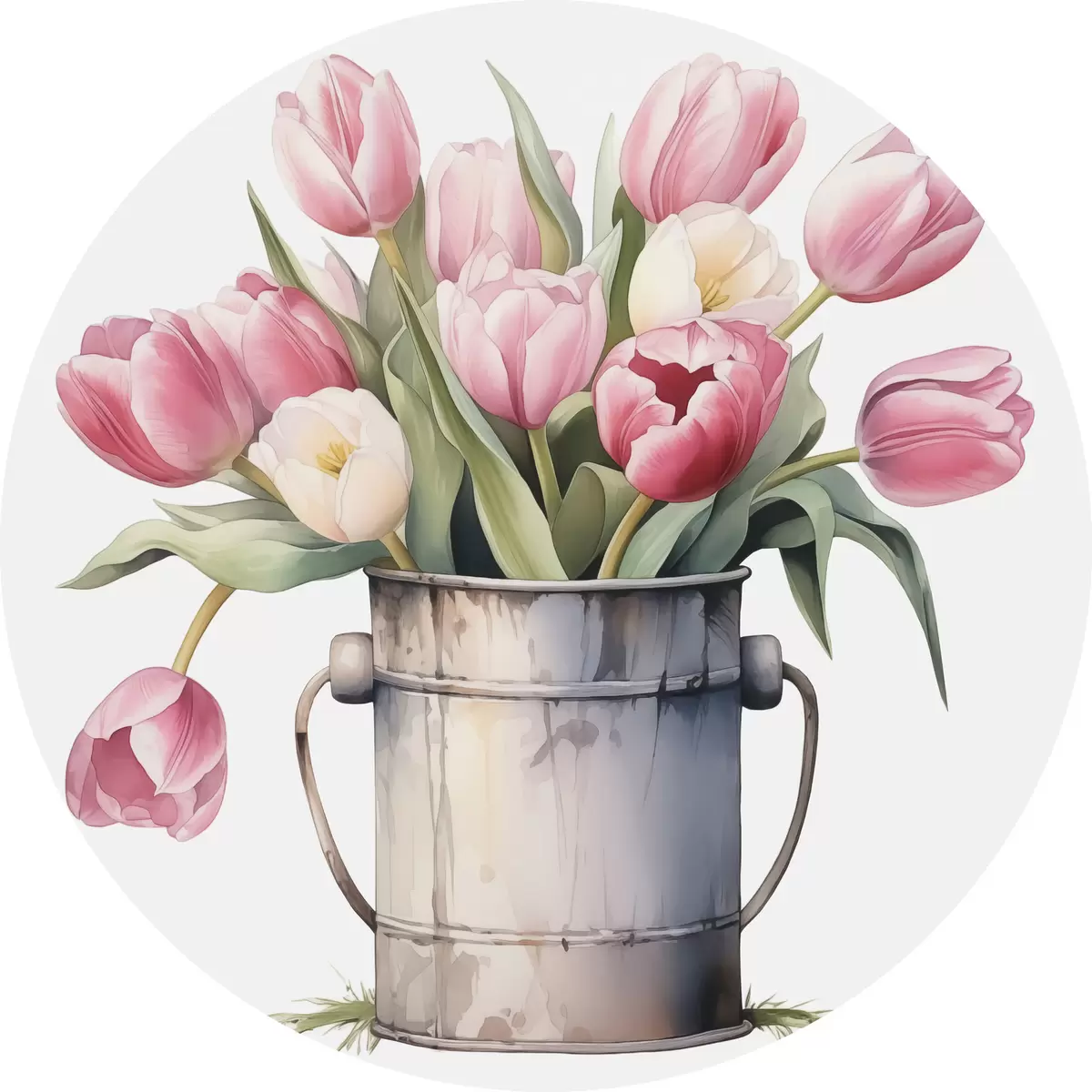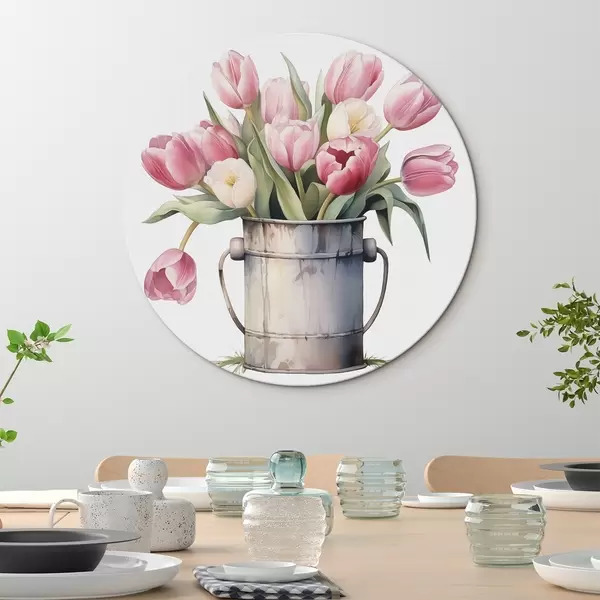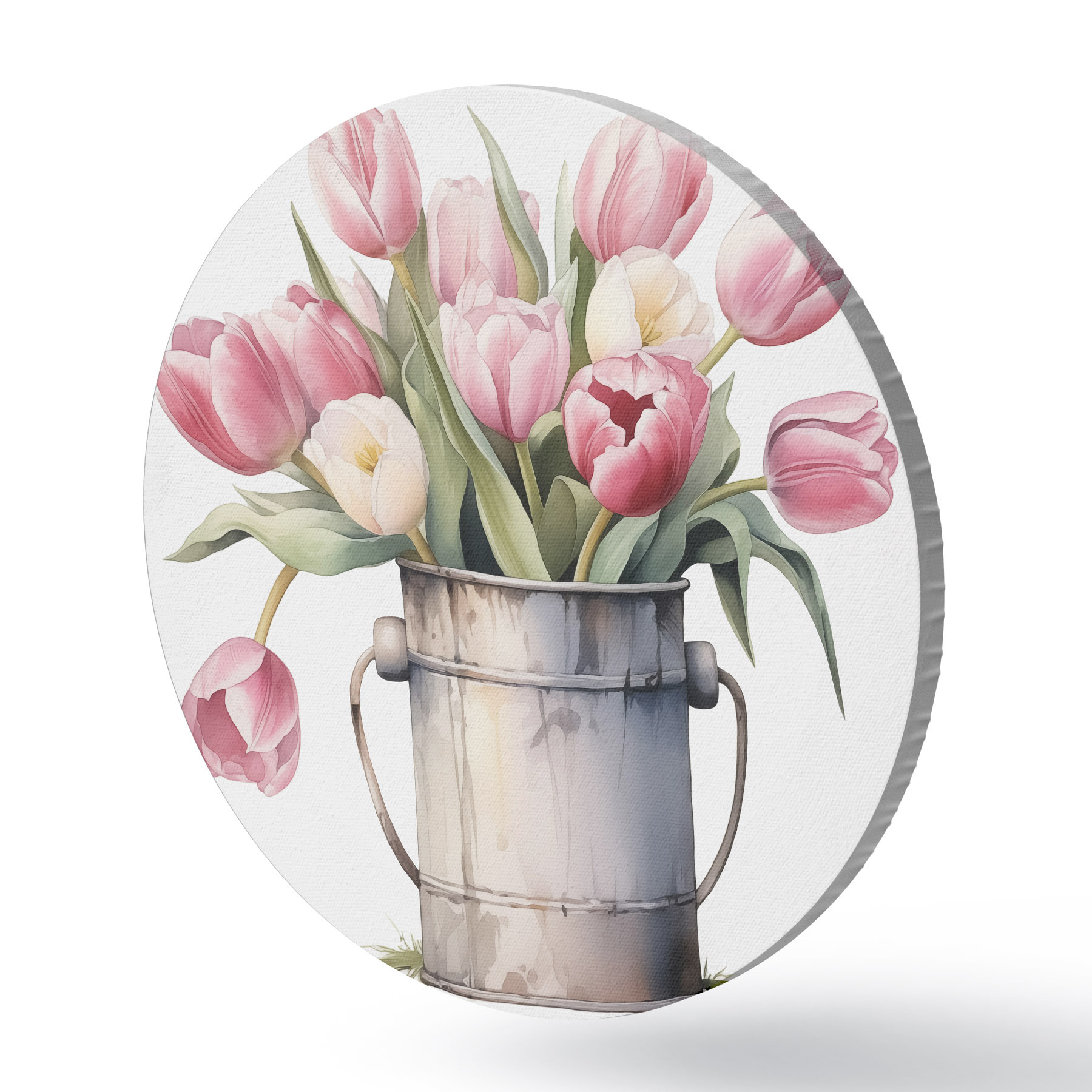 Runde Gemälde Blumenstrauß von Tulpen in einem Eimer Nachahmung von Aquarell r42353