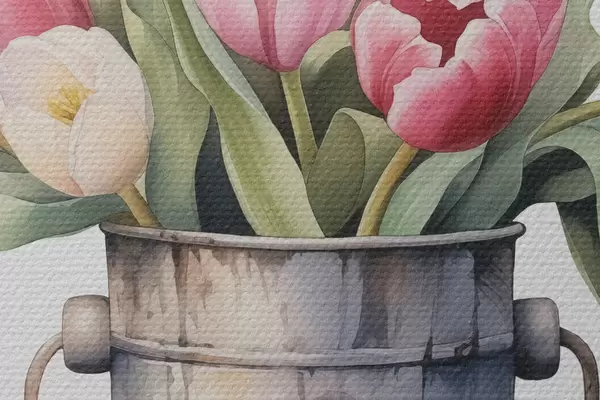 Bild Blumenstrauß von Tulpen in einem Eimer Nachahmung von Aquarell Nr r42353