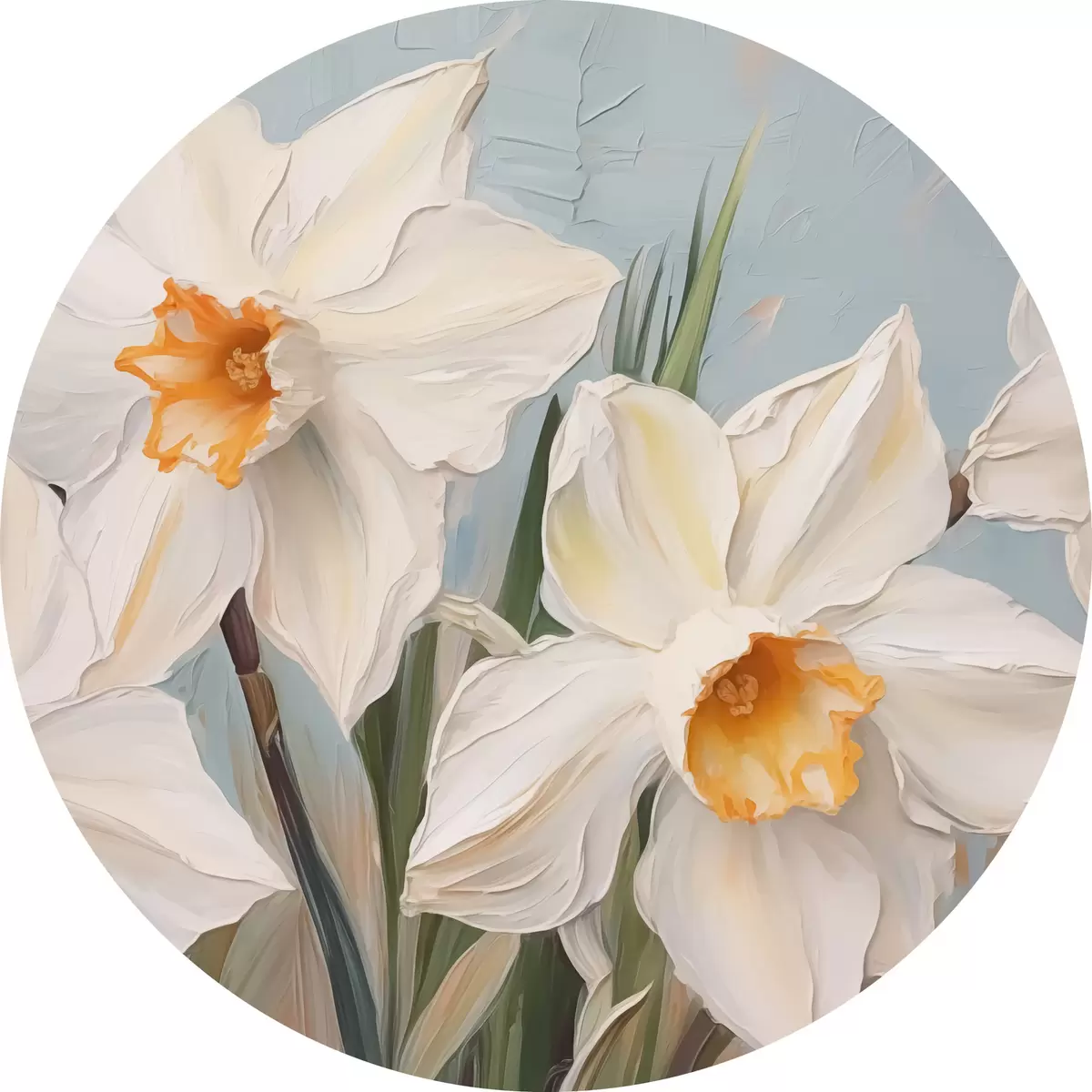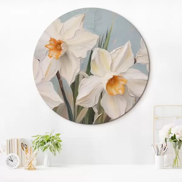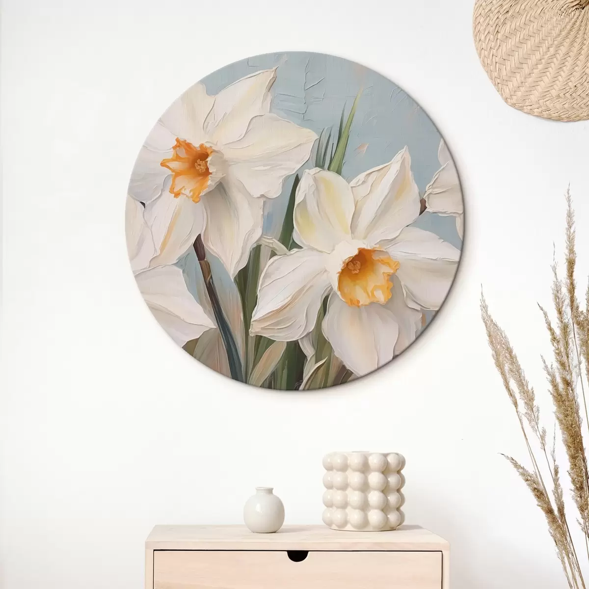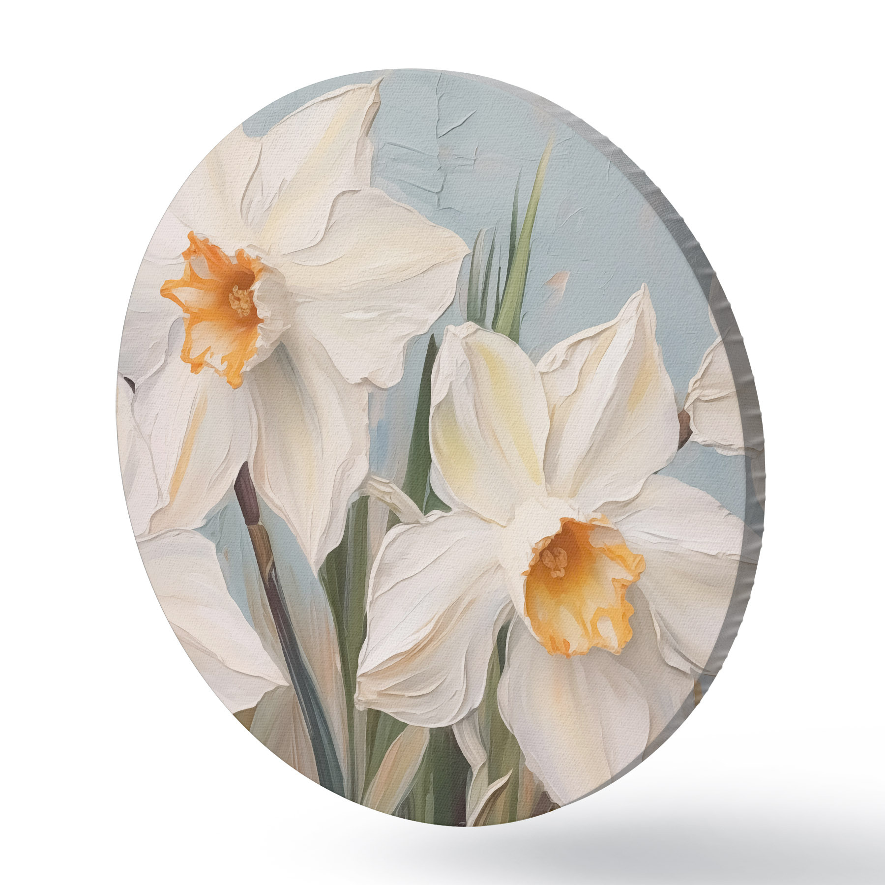 Runde Gemälde Weiße Osterglocken große Nachahmung der Malerei r42355