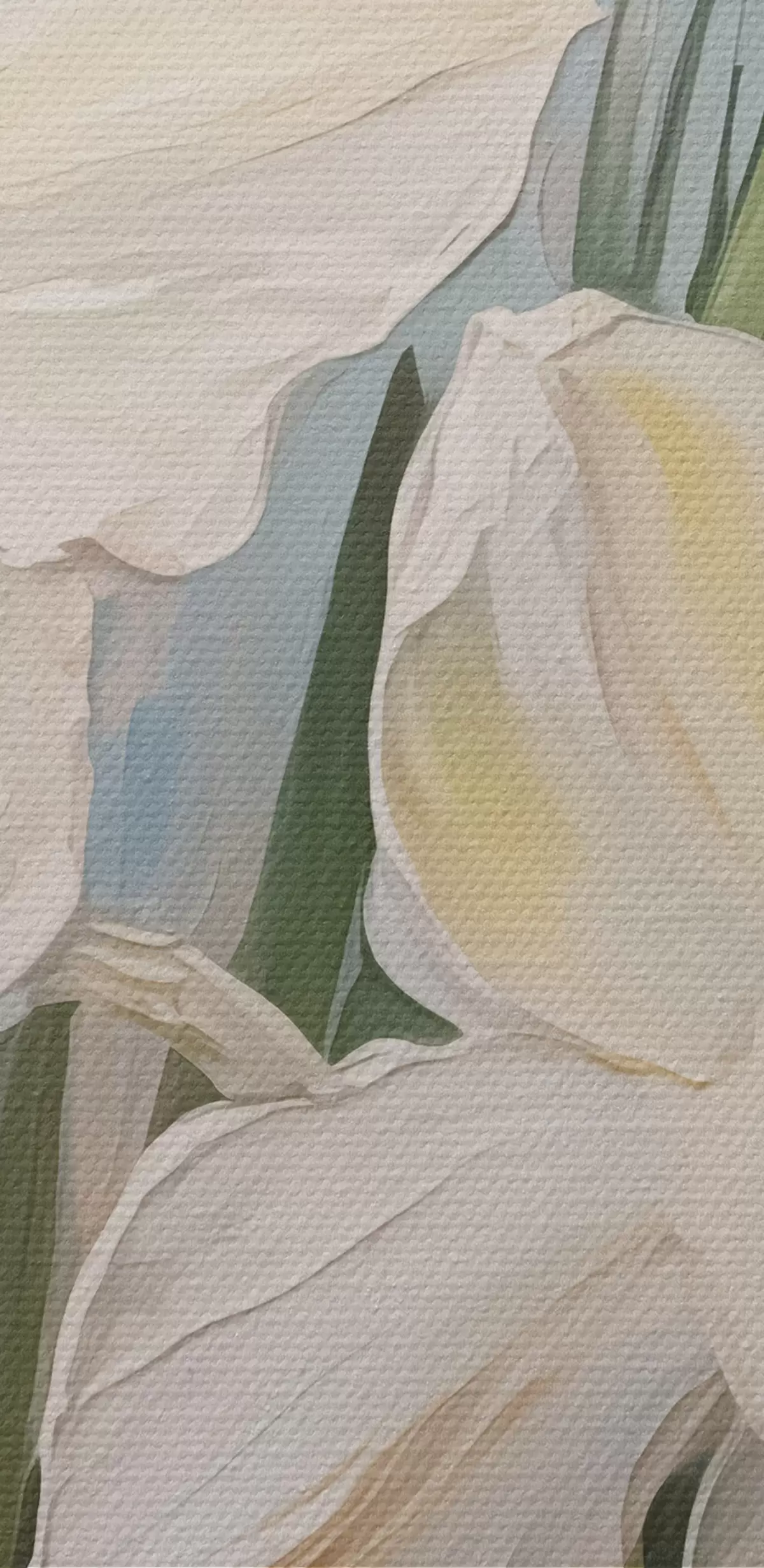Drei Materialtypen stehen zur Verfügung: Economic Canvas - ein dichtes und haltbares Material für den Digitaldruck, identisch mit Malerleinwand, wasserfeste Oberfläche, realistische Wiedergabe von Details, mittelkörniges Material. Premium Canvas - die Textur ähnelt der einer Malerleinwand (verwobene kleine Fäden). Weiche, detaillierte Wiedergabe des Bildes auf einer matten Oberfläche. Eco-Premium - hochwertiges Gewebe aus 100% Baumwolle. Dank der natürlichen Baumwollfasern ist das Material langlebig und verschleißfest. Hervorragende Farbwiedergabe und Detailtreue.