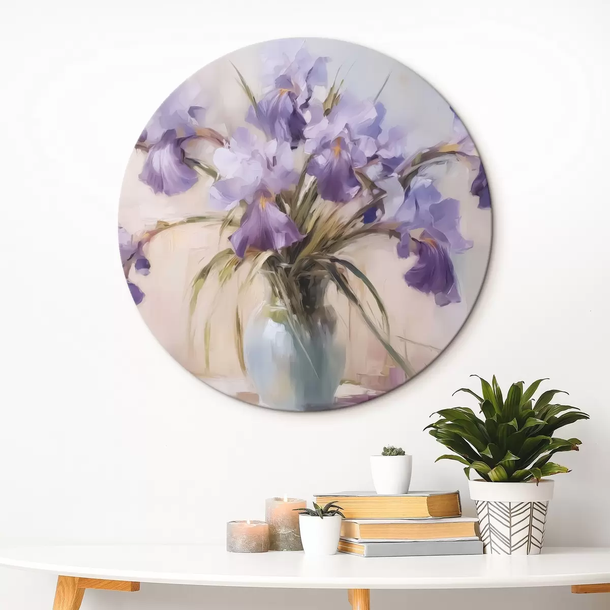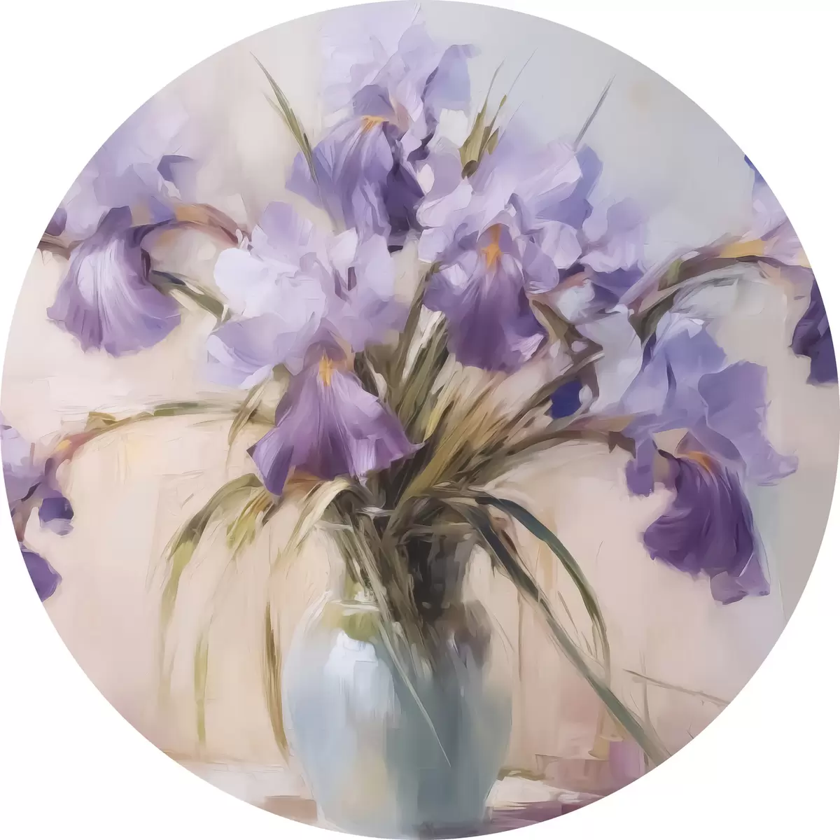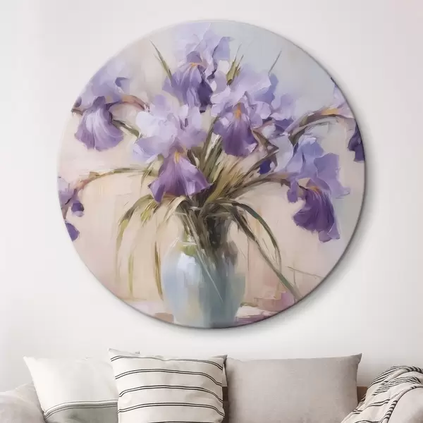 Runde Gemälde Schwertlilien in einer Vase Nachahmung der Malerei r42357