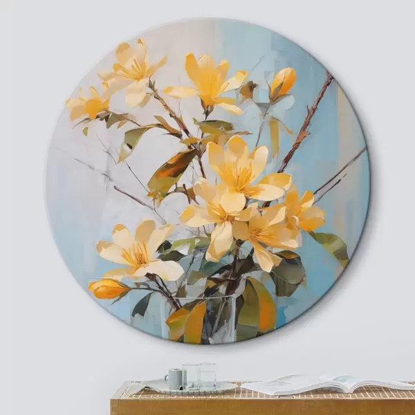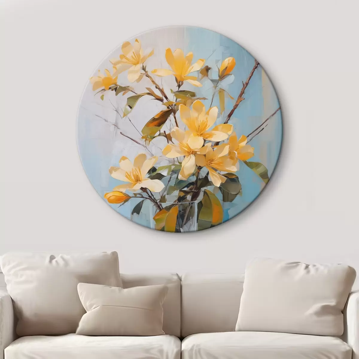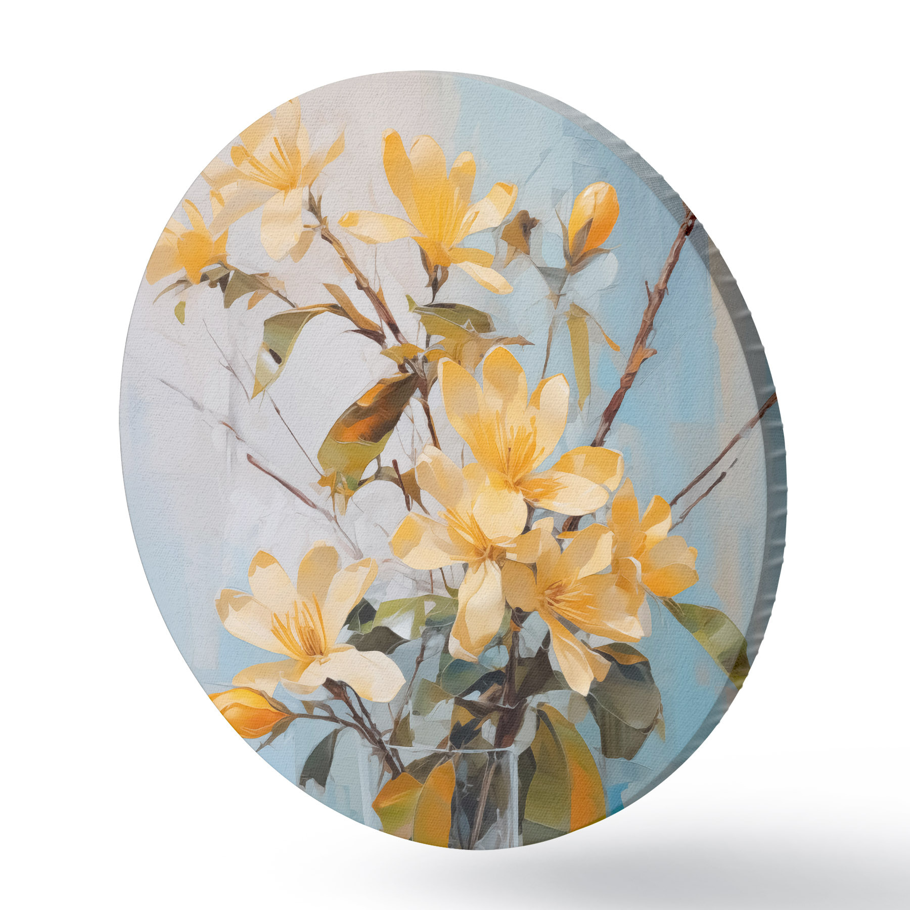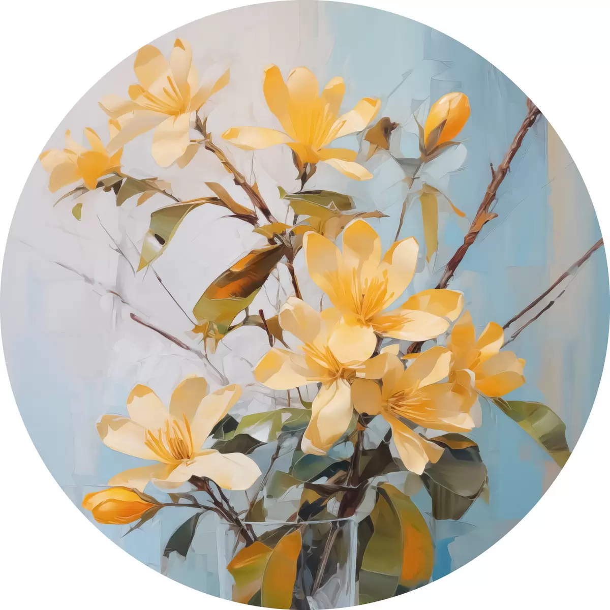 Runde Gemälde Zweige mit gelben Blumen in einer Vase Nachahmung der Malerei r42358