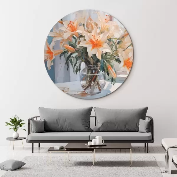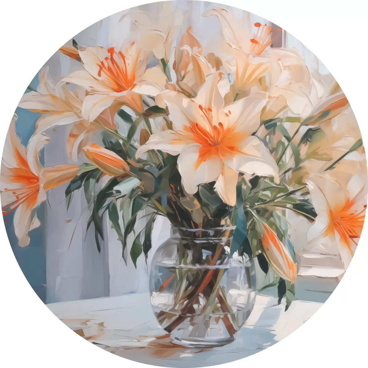 Runde Gemälde Lilien in einer Glasvase Nachahmung der Malerei r42359