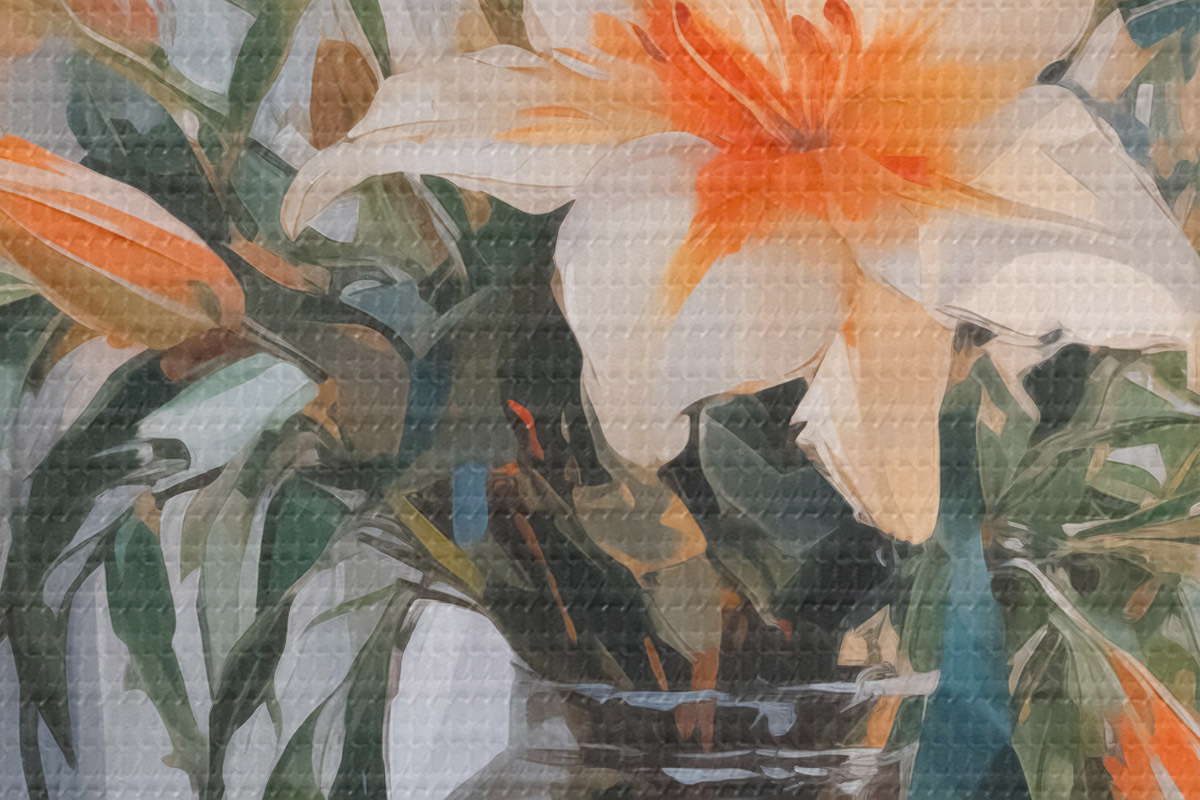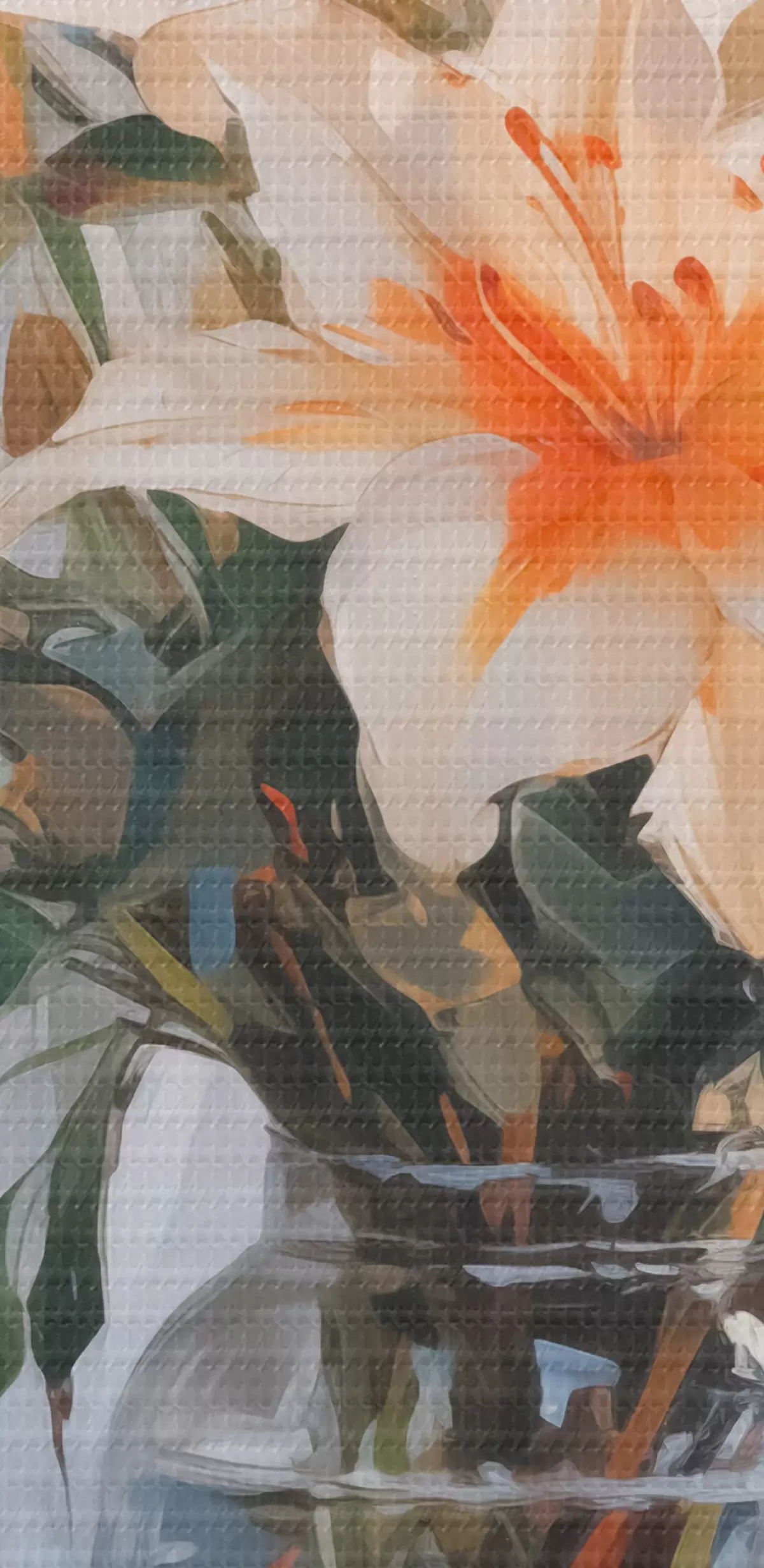 Drei Materialtypen stehen zur Verfügung: Economic Canvas - ein dichtes und haltbares Material für den Digitaldruck, identisch mit Malerleinwand, wasserfeste Oberfläche, realistische Wiedergabe von Details, mittelkörniges Material. Premium Canvas - die Textur ähnelt der einer Malerleinwand (verwobene kleine Fäden). Weiche, detaillierte Wiedergabe des Bildes auf einer matten Oberfläche. Eco-Premium - hochwertiges Gewebe aus 100% Baumwolle. Dank der natürlichen Baumwollfasern ist das Material langlebig und verschleißfest. Hervorragende Farbwiedergabe und Detailtreue.