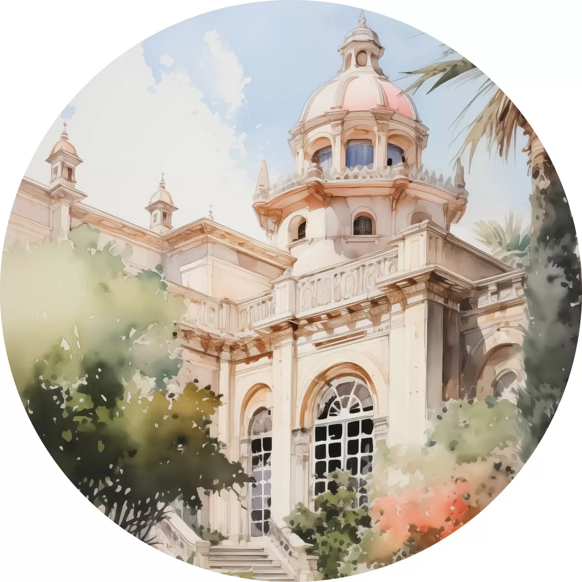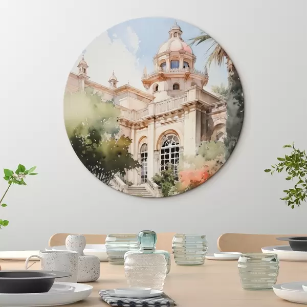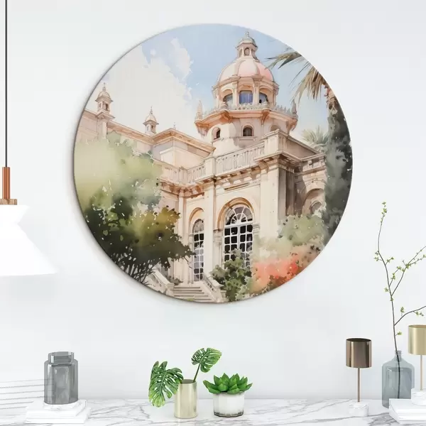 Runde Gemälde Garten in der Nähe des Hauses Nachahmung Aquarell r42362