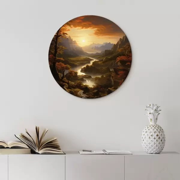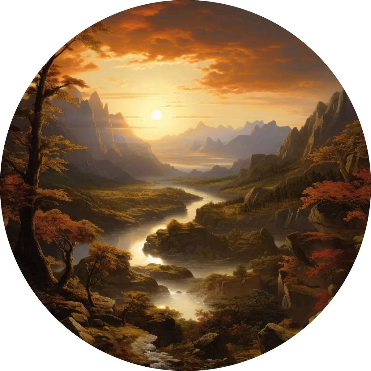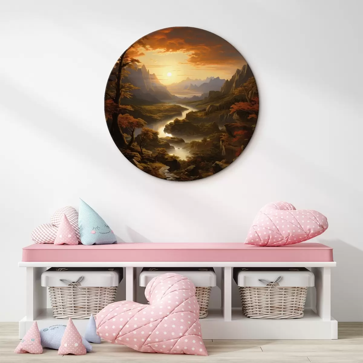 Runde Gemälde Morgendämmerung in den Bergen r42385