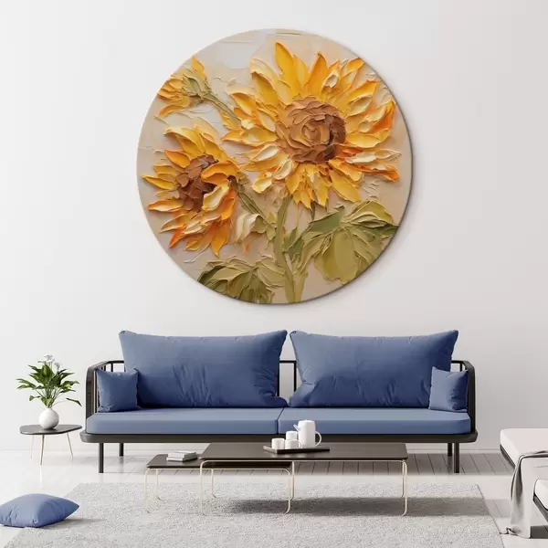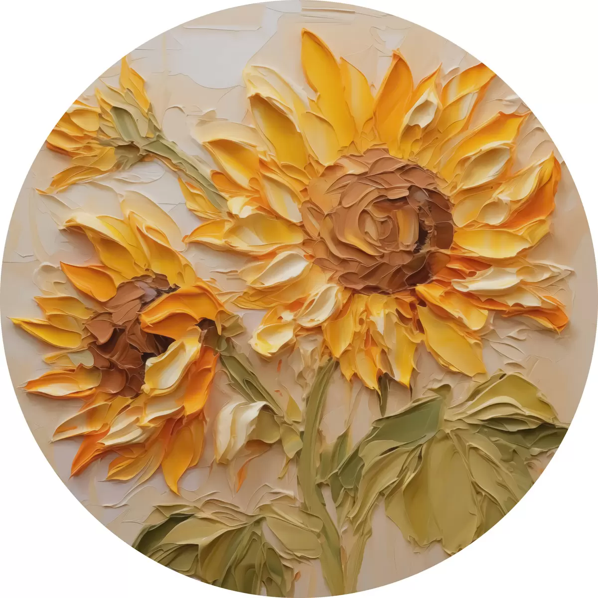 Runde Gemälde Sonnenblumen Nachahmung von Pinselstrichen r42411