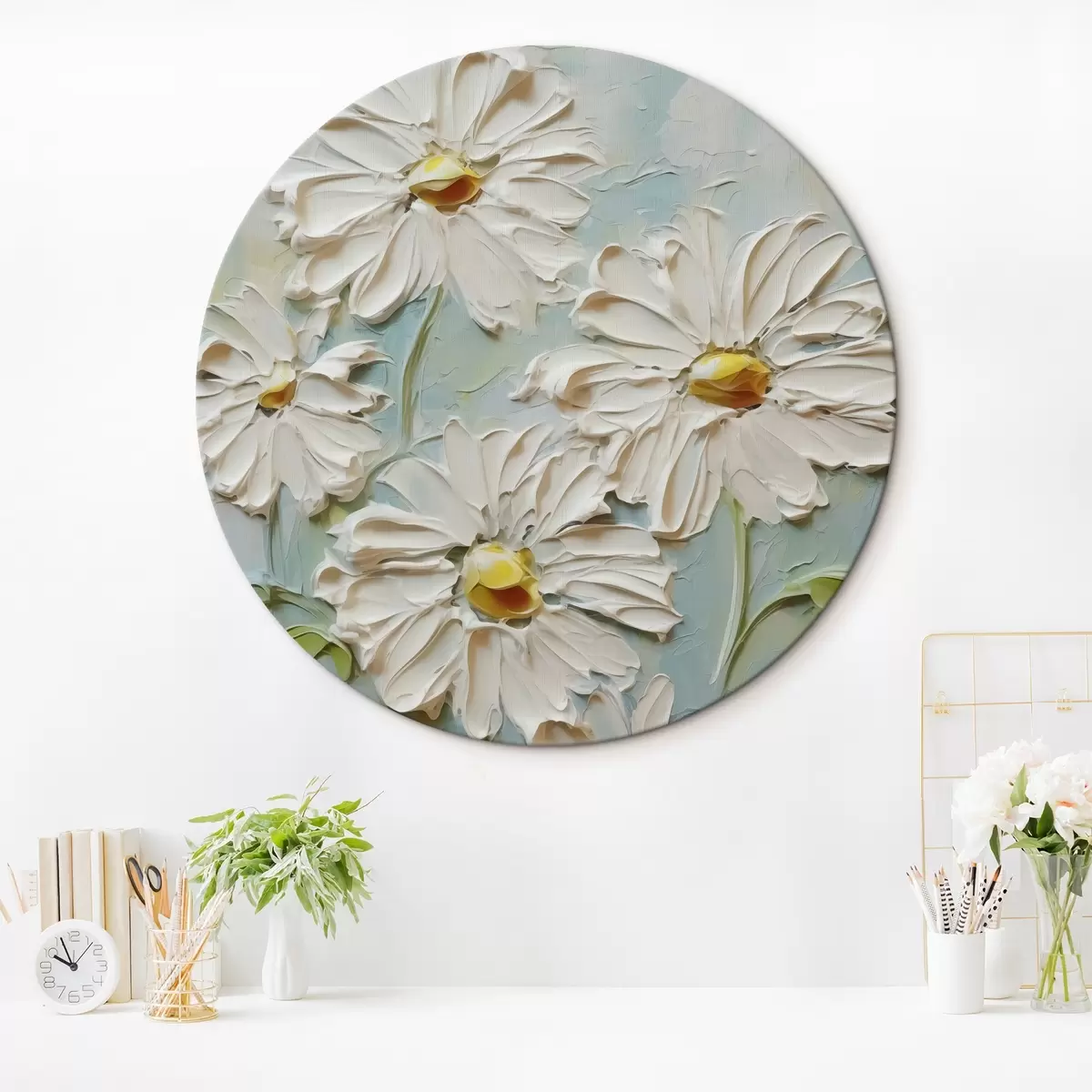 Runde Gemälde Weiße Gänseblümchen Nachahmung von Pinselstrichen r42422