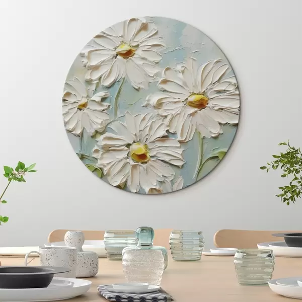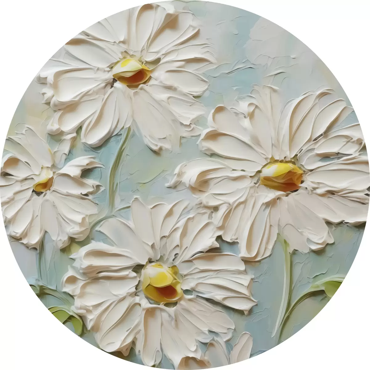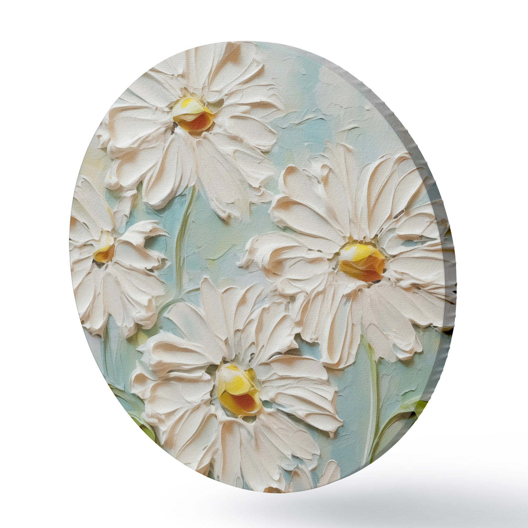 Runde Gemälde Weiße Gänseblümchen Nachahmung von Pinselstrichen r42422
