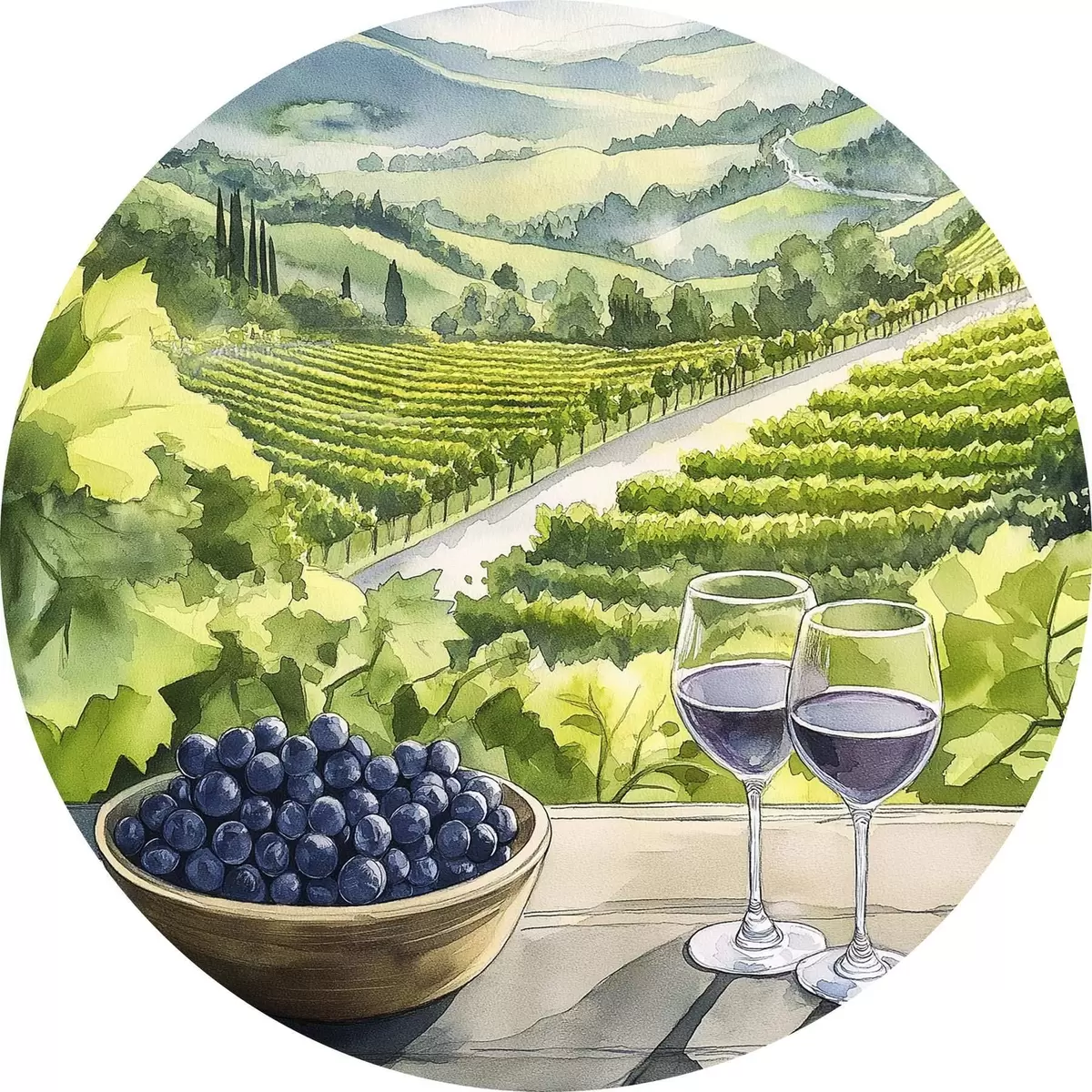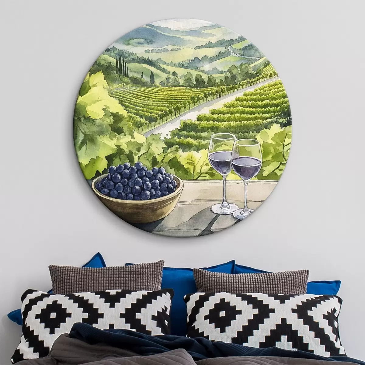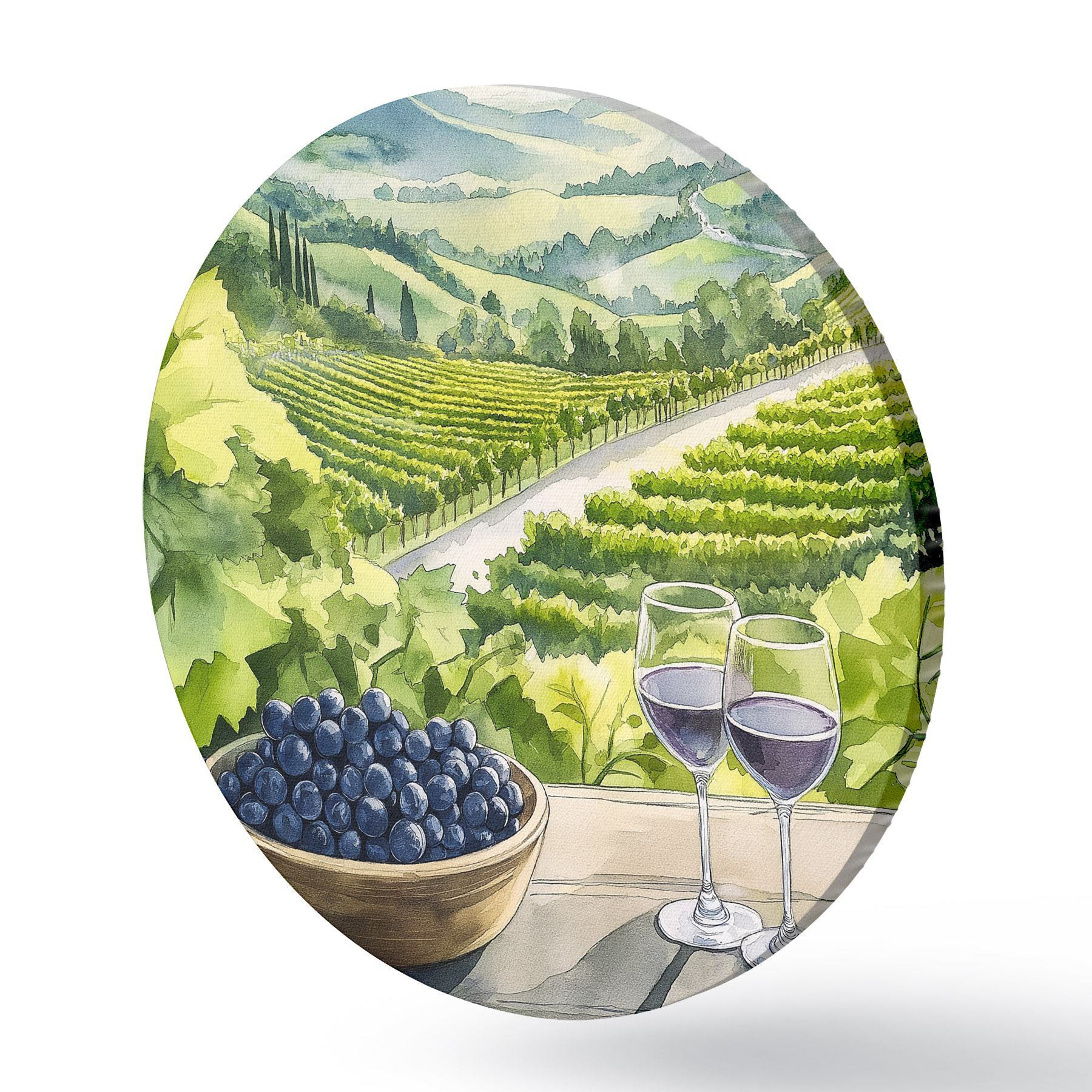 Runde Gemälde Gpape Höfe, Landschaften im Aquarellstil, Weingläser r42444