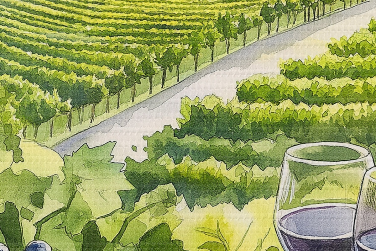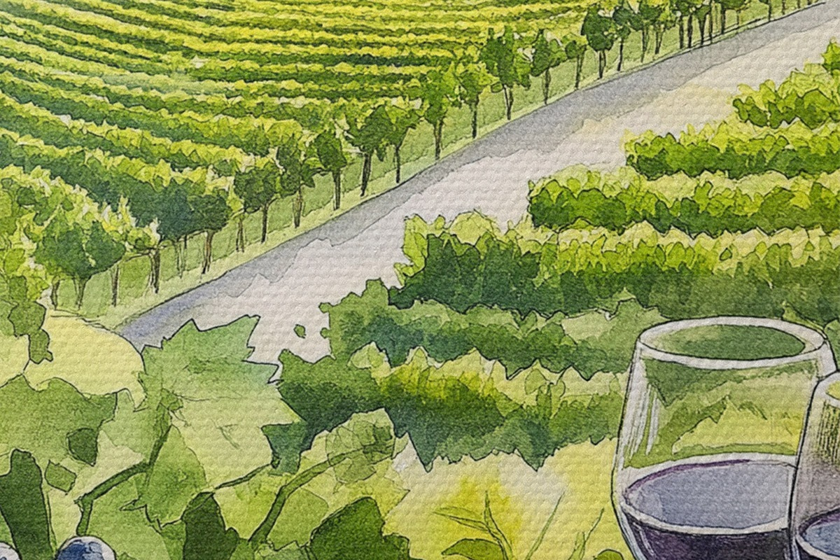 Bild Gpape Höfe, Landschaften im Aquarellstil, Weingläser Nr r42444
