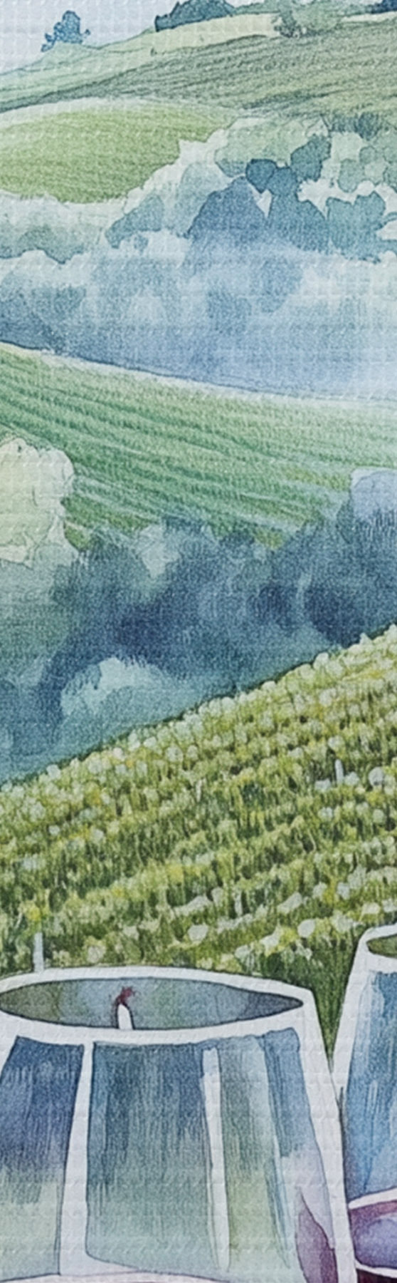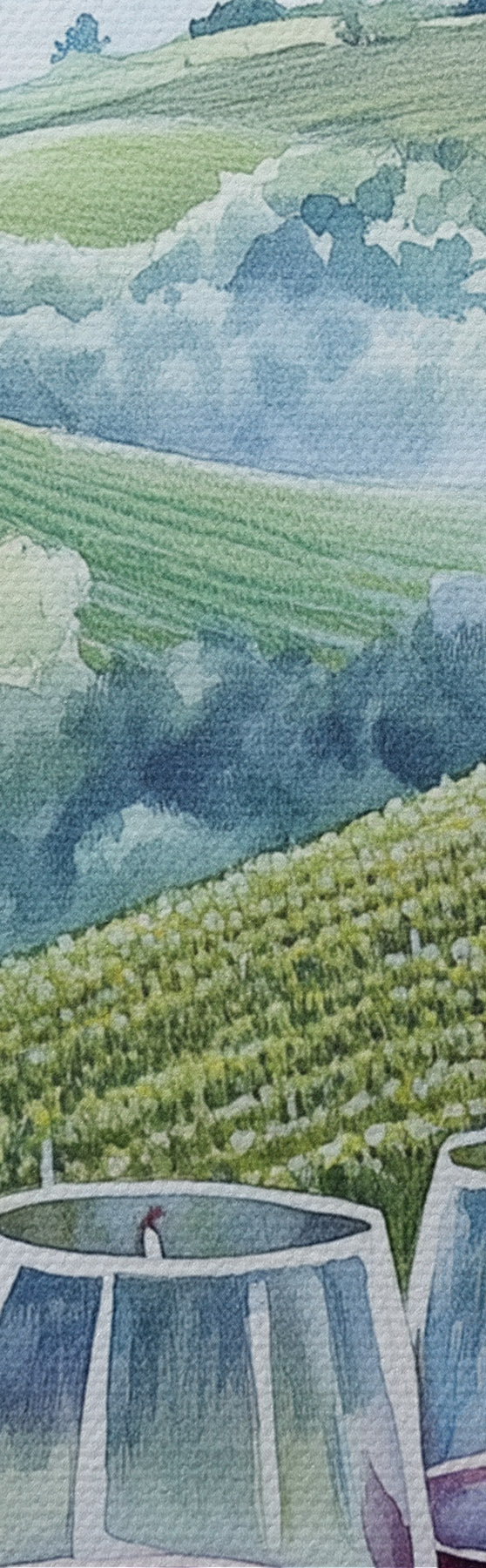 Bild Landschaft der Toskana, Weinberge, Weingläser, Aquarellstil Nr r42445
