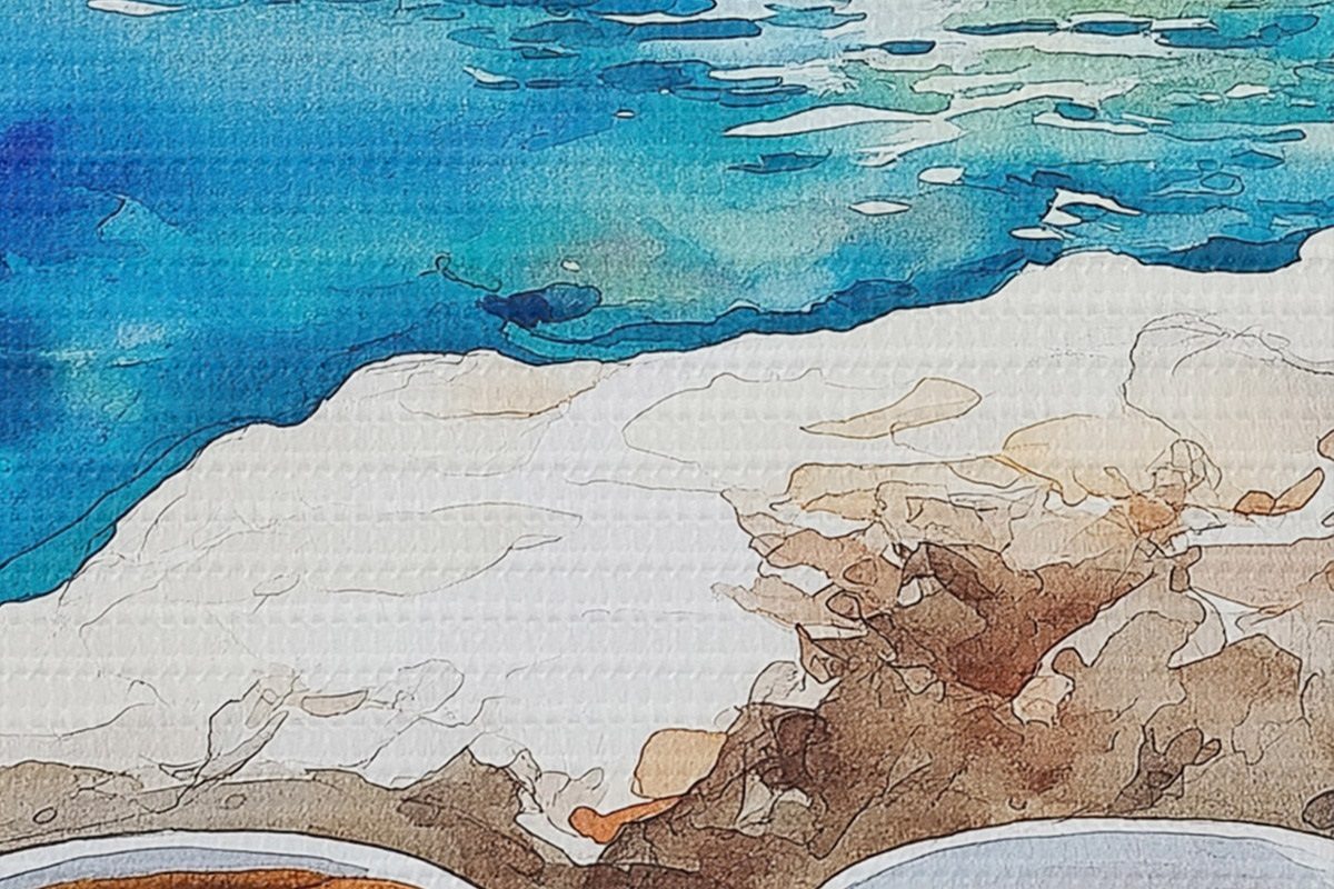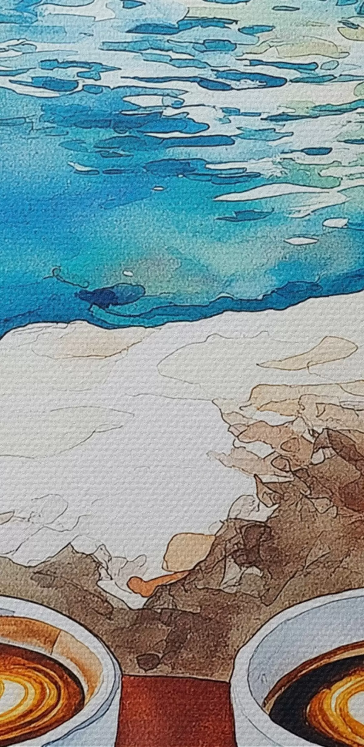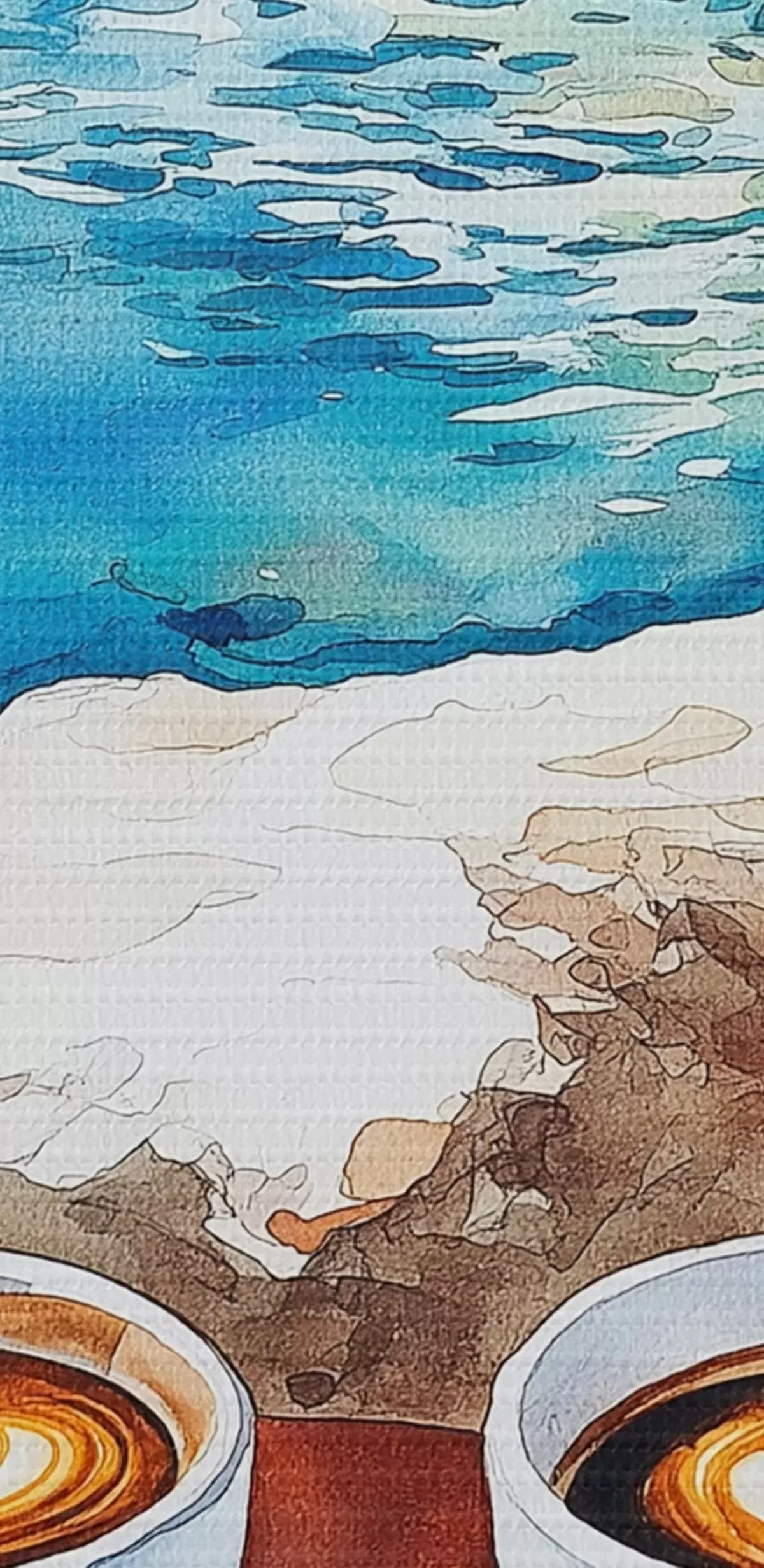 Bild Aquarell Seeseite mit Tassen Kaffee, Sommer Nr r42449