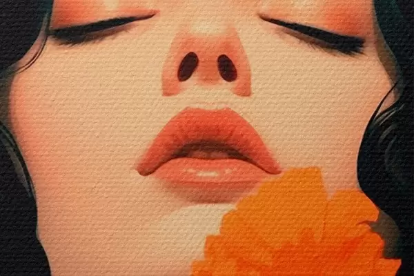 Bild Weibliches Porträt zwischen roten Blumen Nr r42478