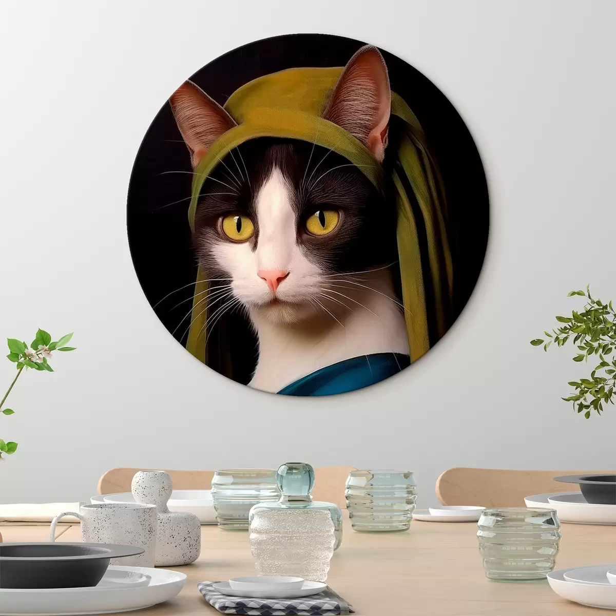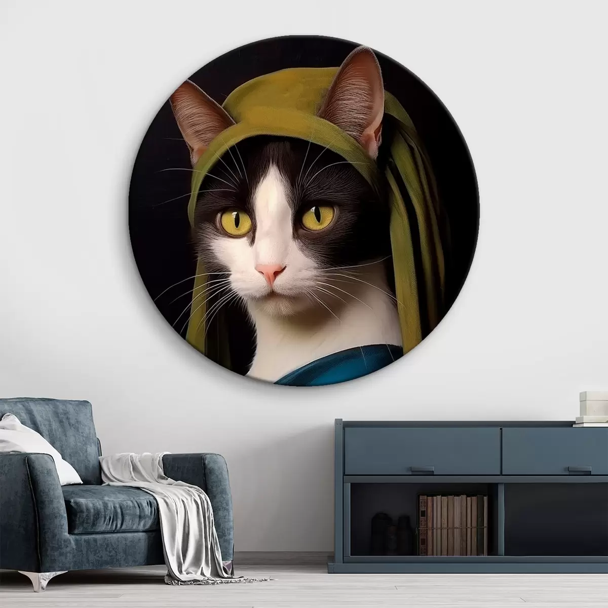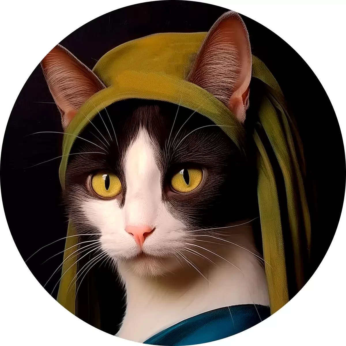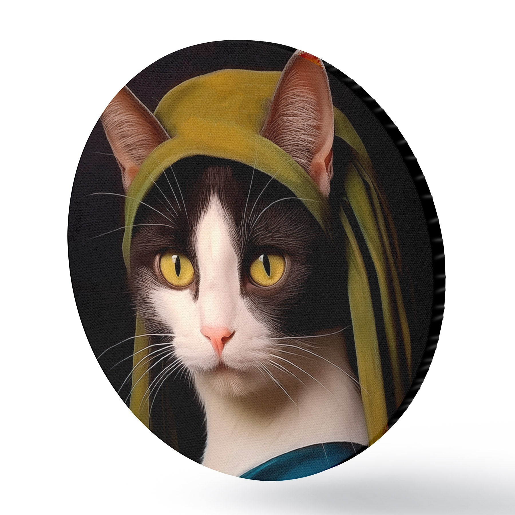 Runde Gemälde Katze im Porträtstil mit Perlenohrring r42486