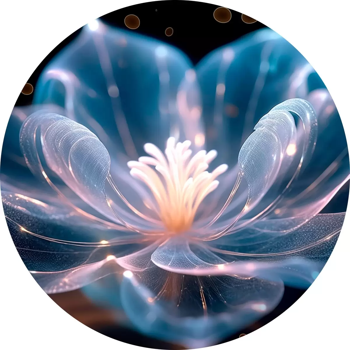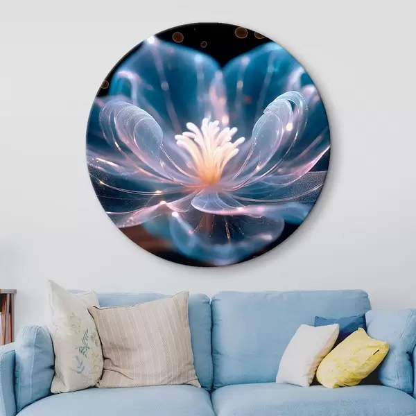 Runde Gemälde Helle Blume mit transparenten Blütenblättern auf dunklem Hintergrund r42488