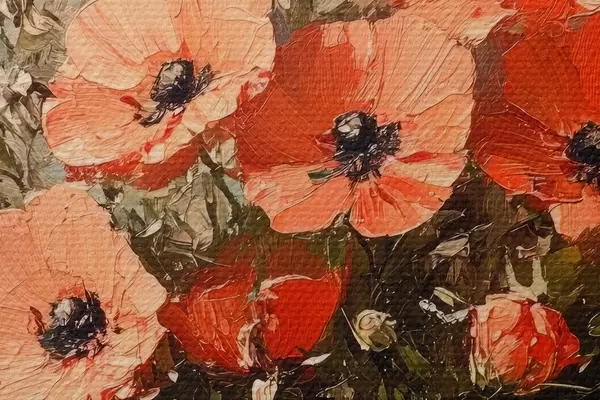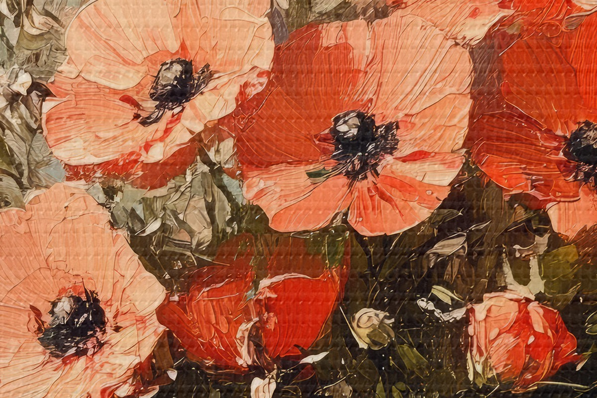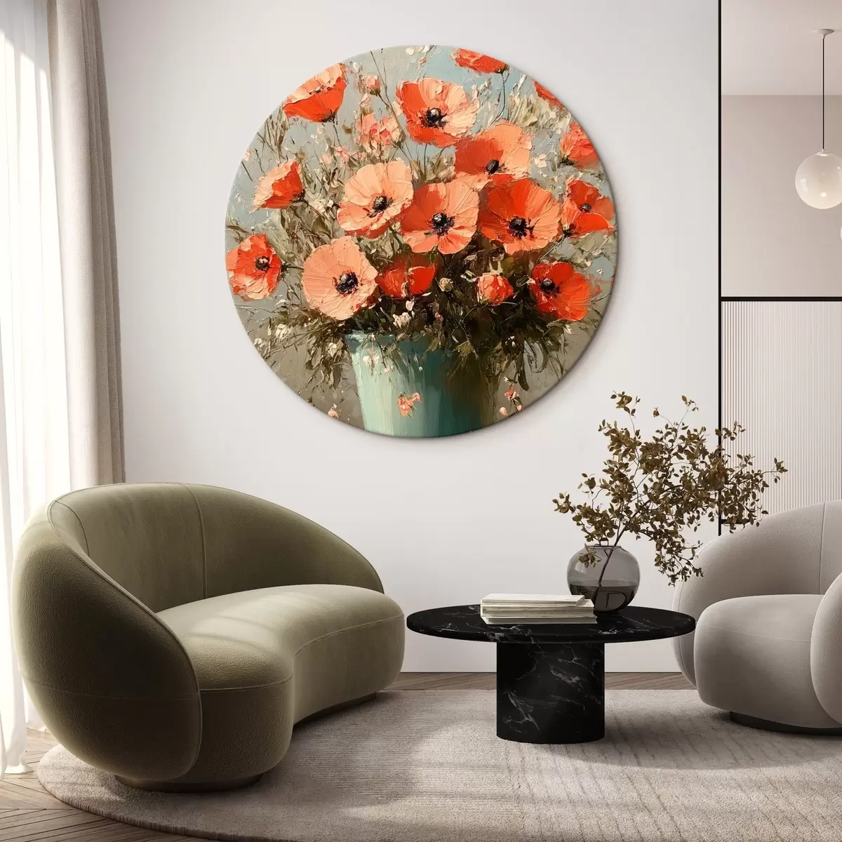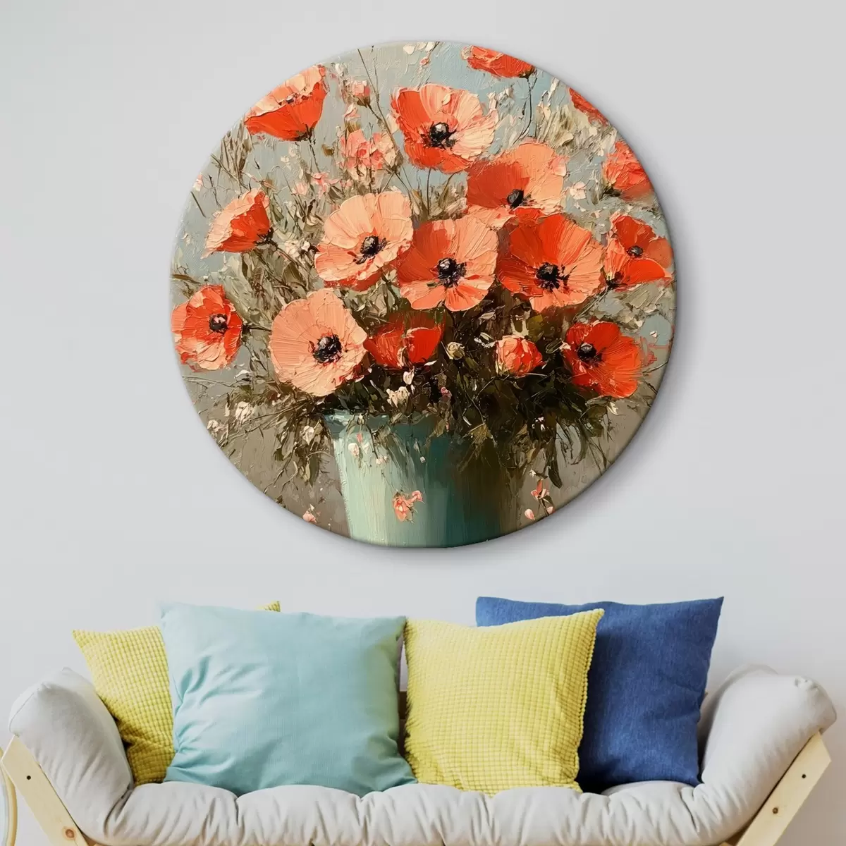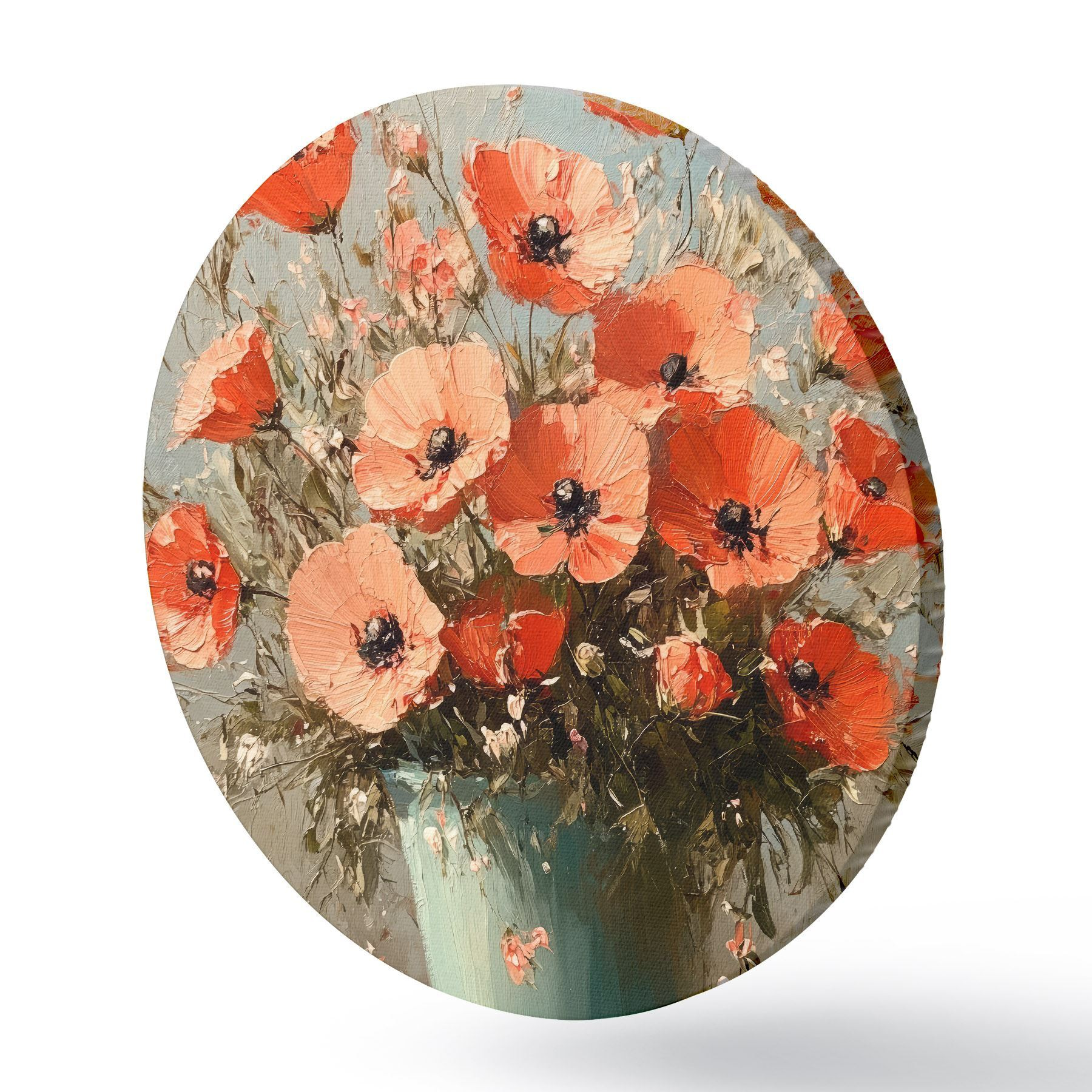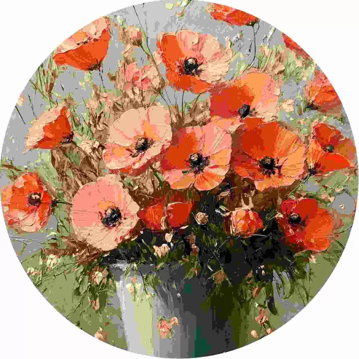 Runde Gemälde Strauß roter Mohnblumen r42492