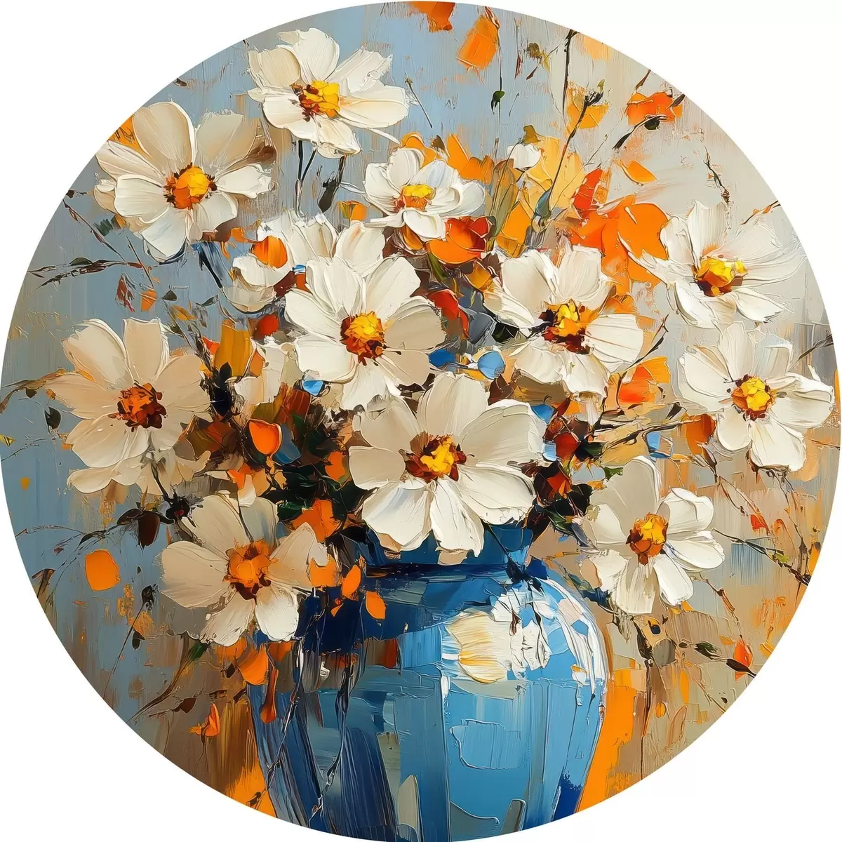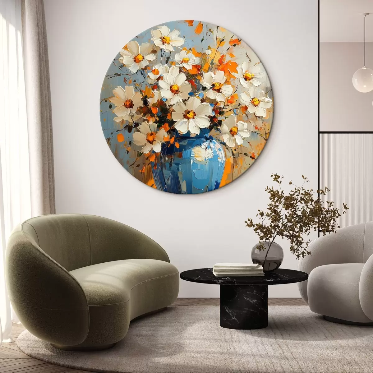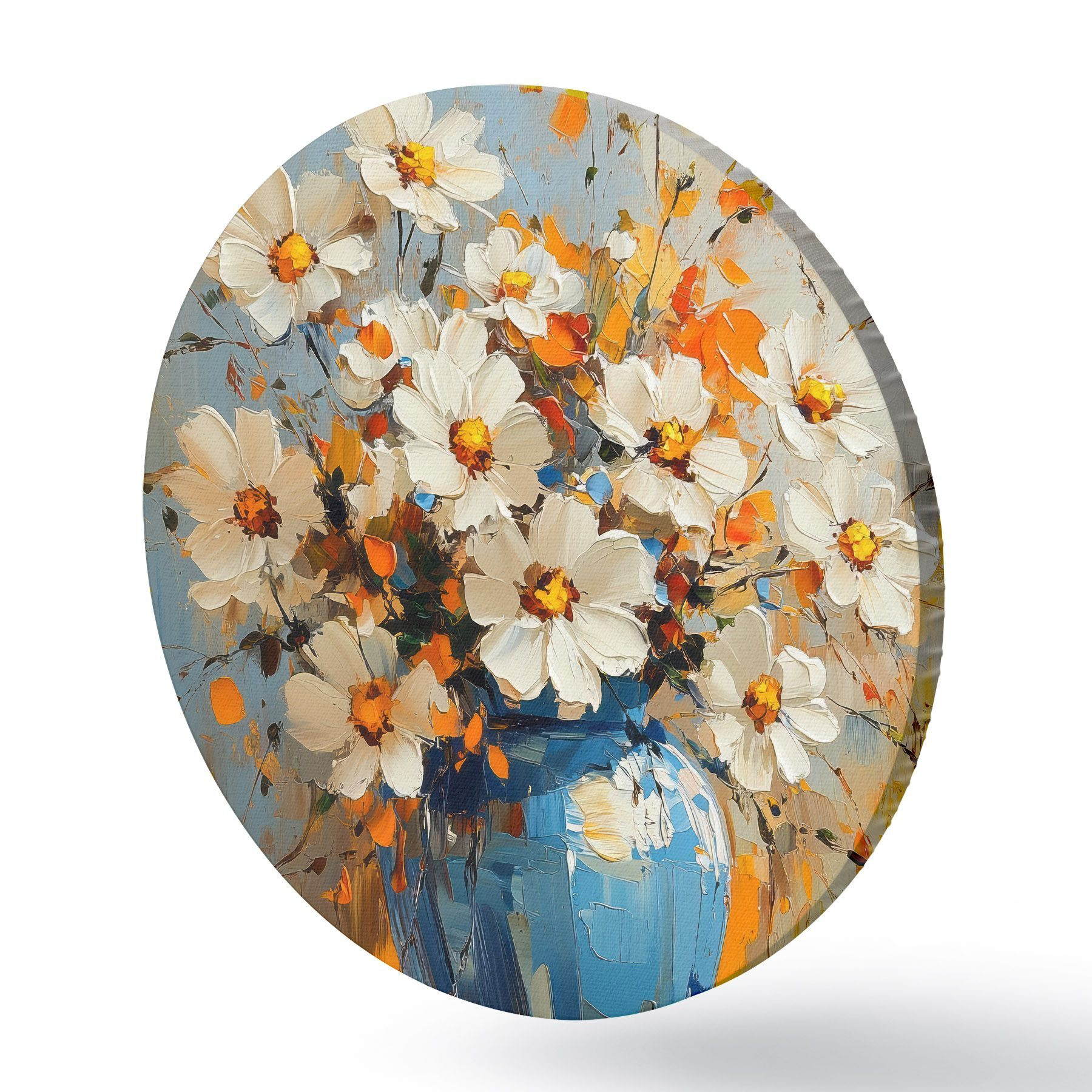 Runde Gemälde Strauß Gänseblümchen in einer Vase r42493