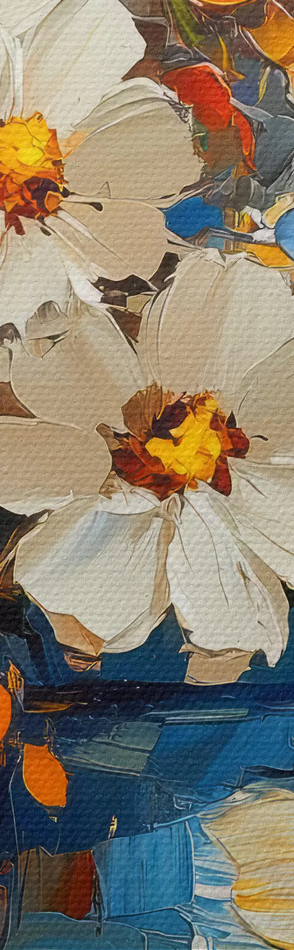 Drei Materialtypen stehen zur Verfügung: Economic Canvas - ein dichtes und haltbares Material für den Digitaldruck, identisch mit Malerleinwand, wasserfeste Oberfläche, realistische Wiedergabe von Details, mittelkörniges Material. Premium Canvas - die Textur ähnelt der einer Malerleinwand (verwobene kleine Fäden). Weiche, detaillierte Wiedergabe des Bildes auf einer matten Oberfläche. Eco-Premium - hochwertiges Gewebe aus 100% Baumwolle. Dank der natürlichen Baumwollfasern ist das Material langlebig und verschleißfest. Hervorragende Farbwiedergabe und Detailtreue.