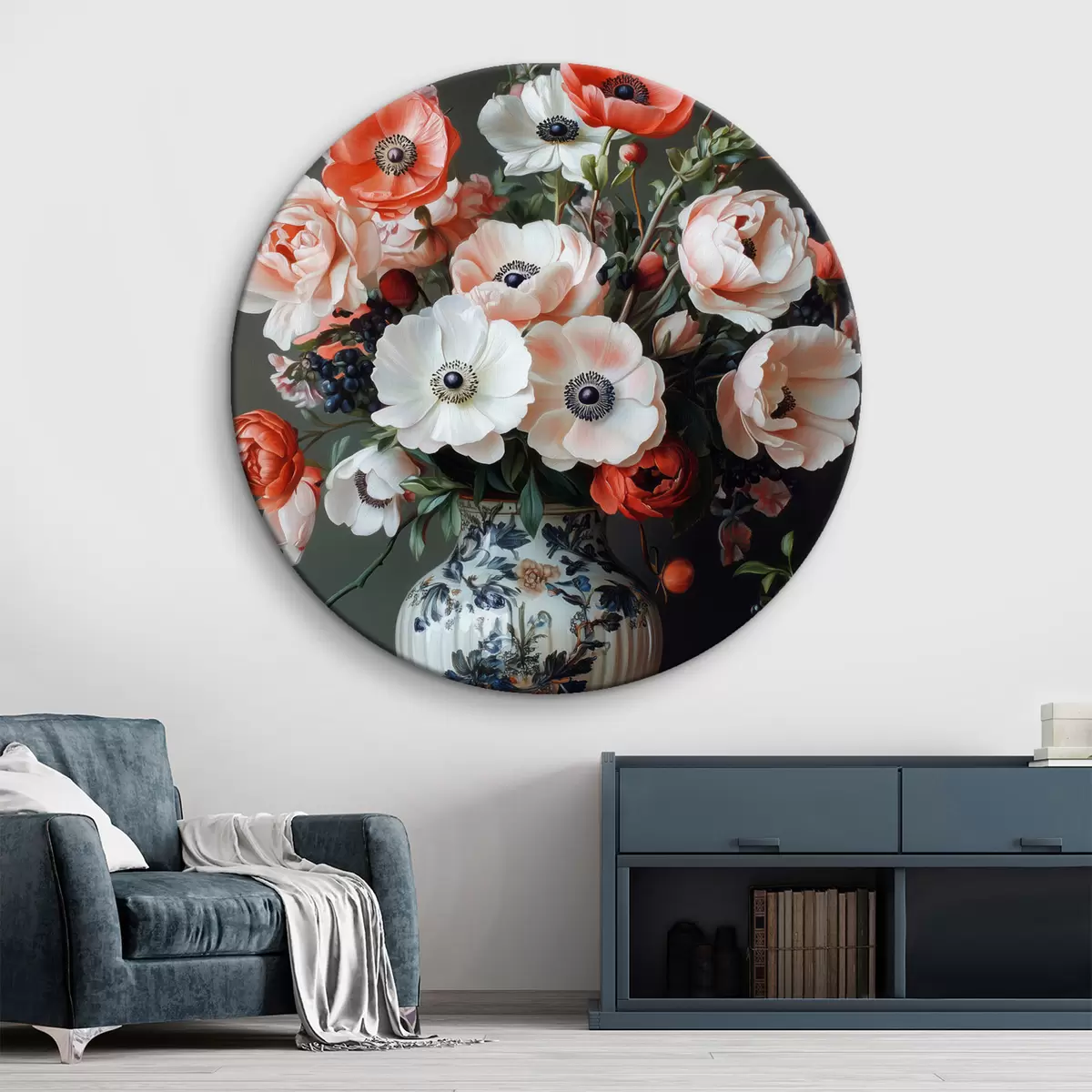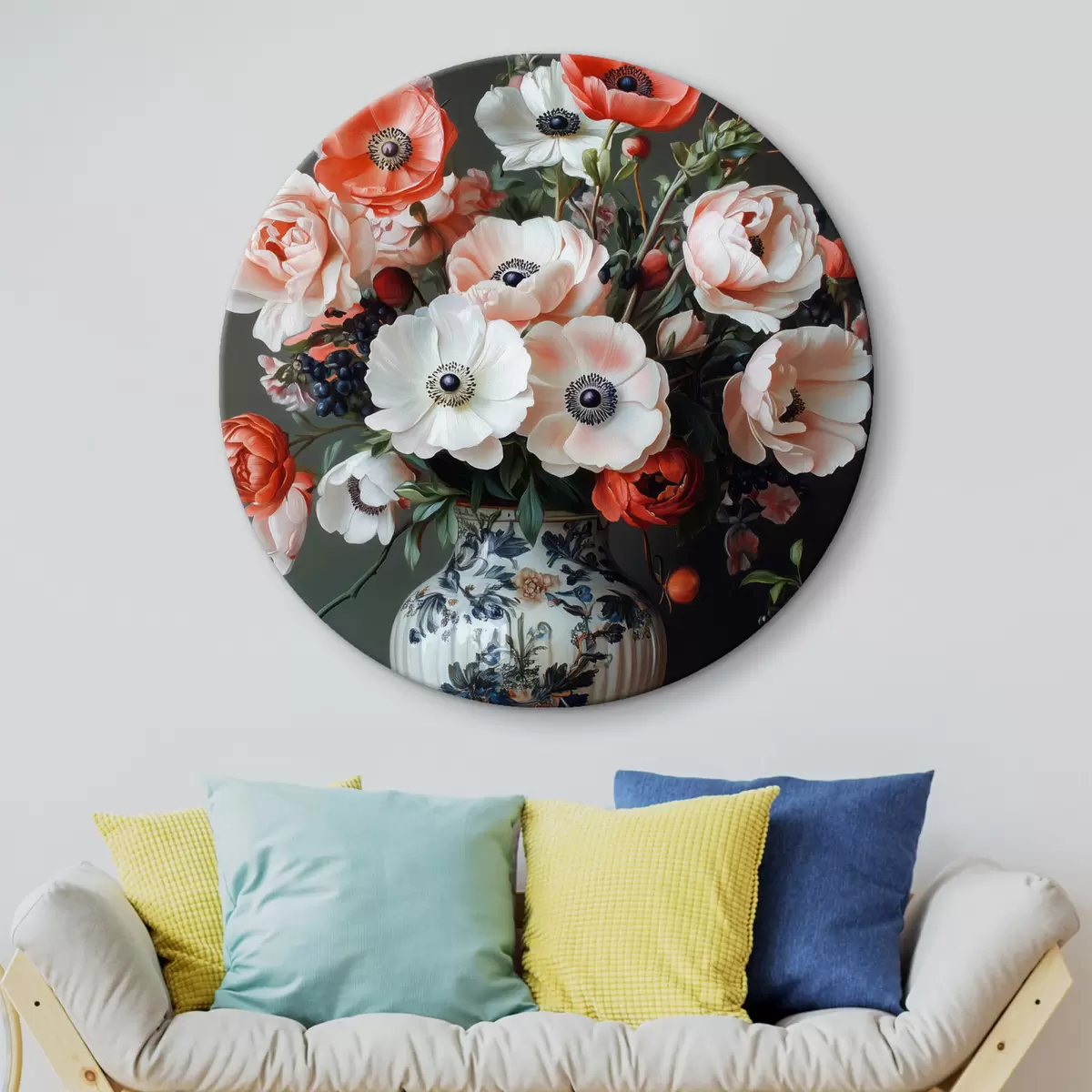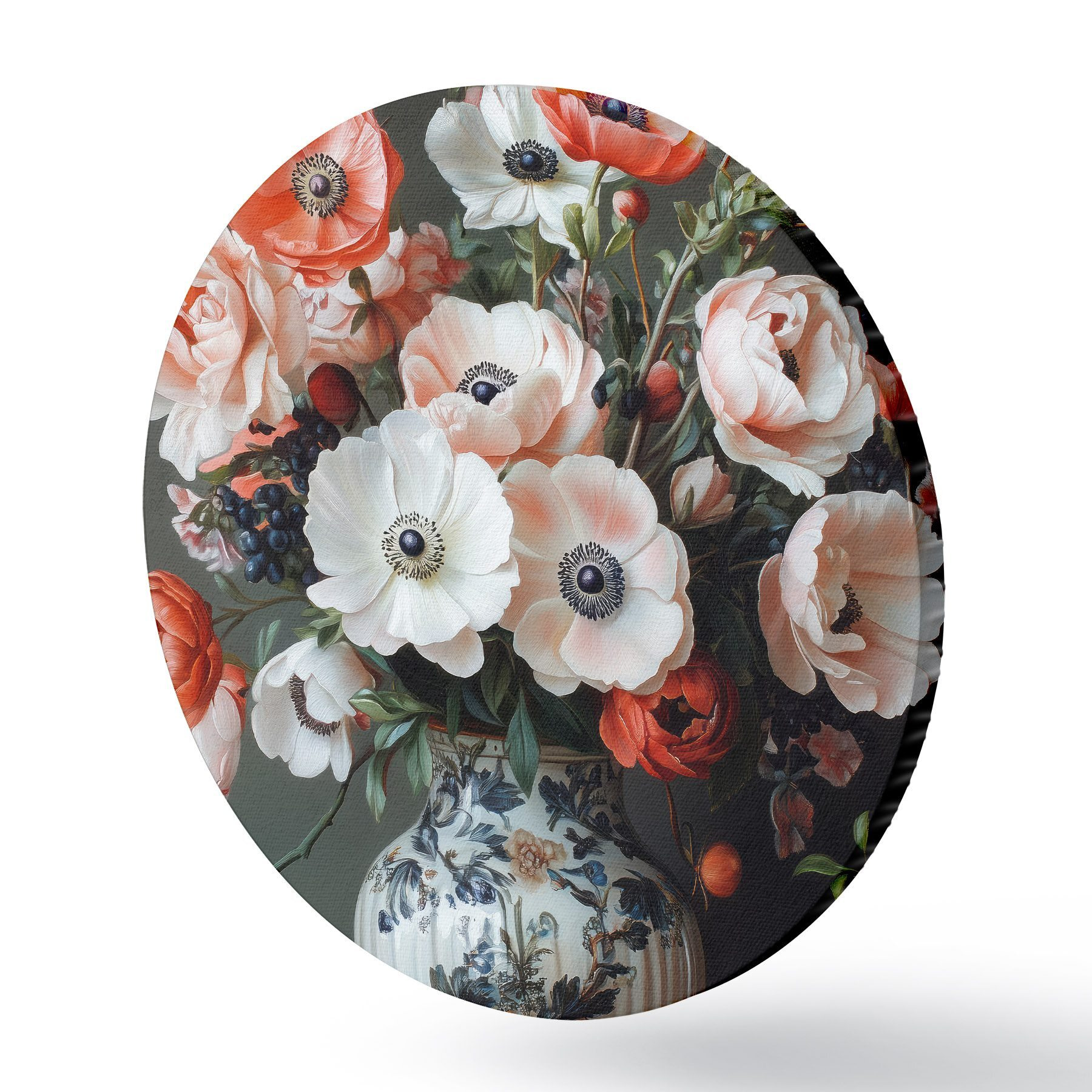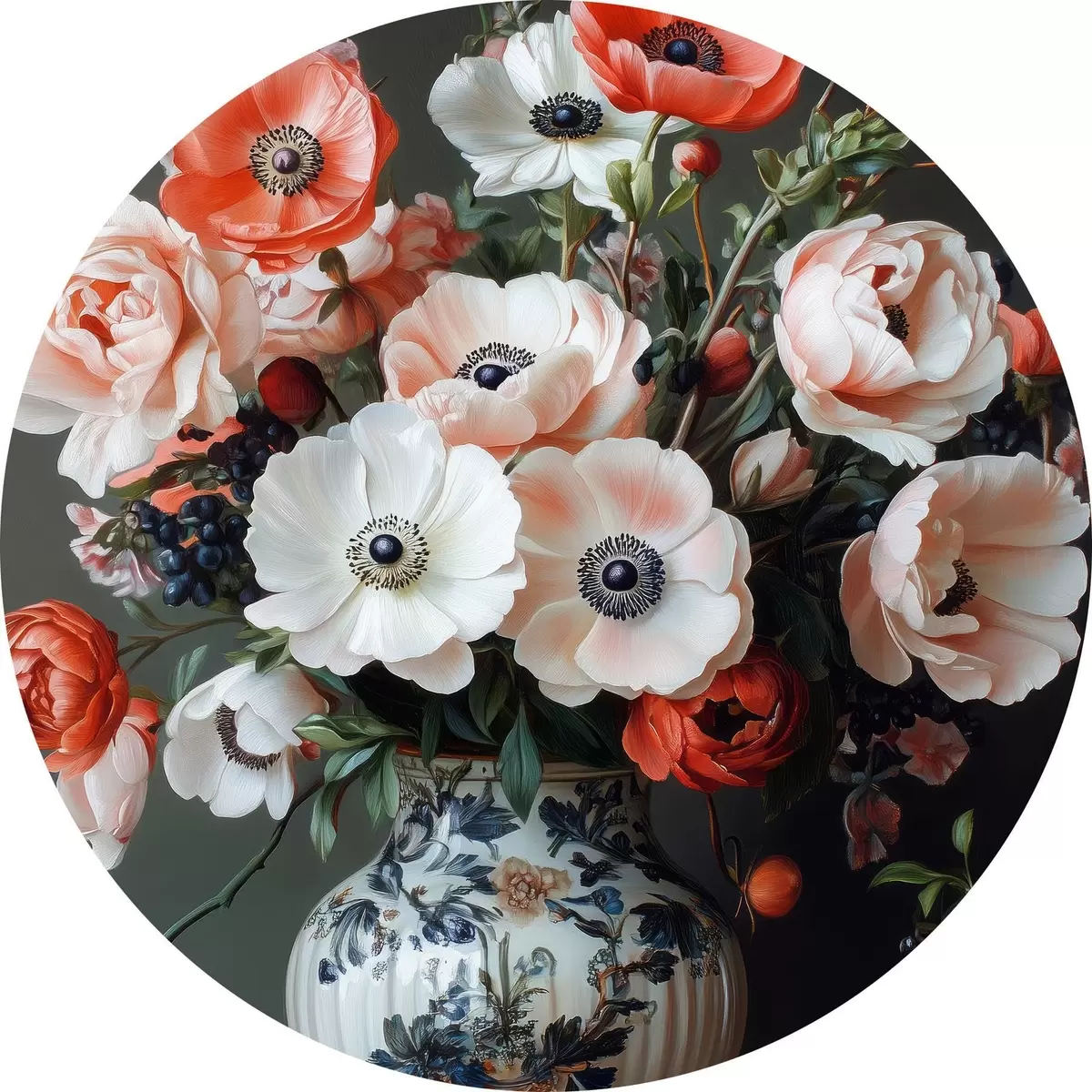 Runde Gemälde Ein Strauß schöner Blumen in einer Vase r42496