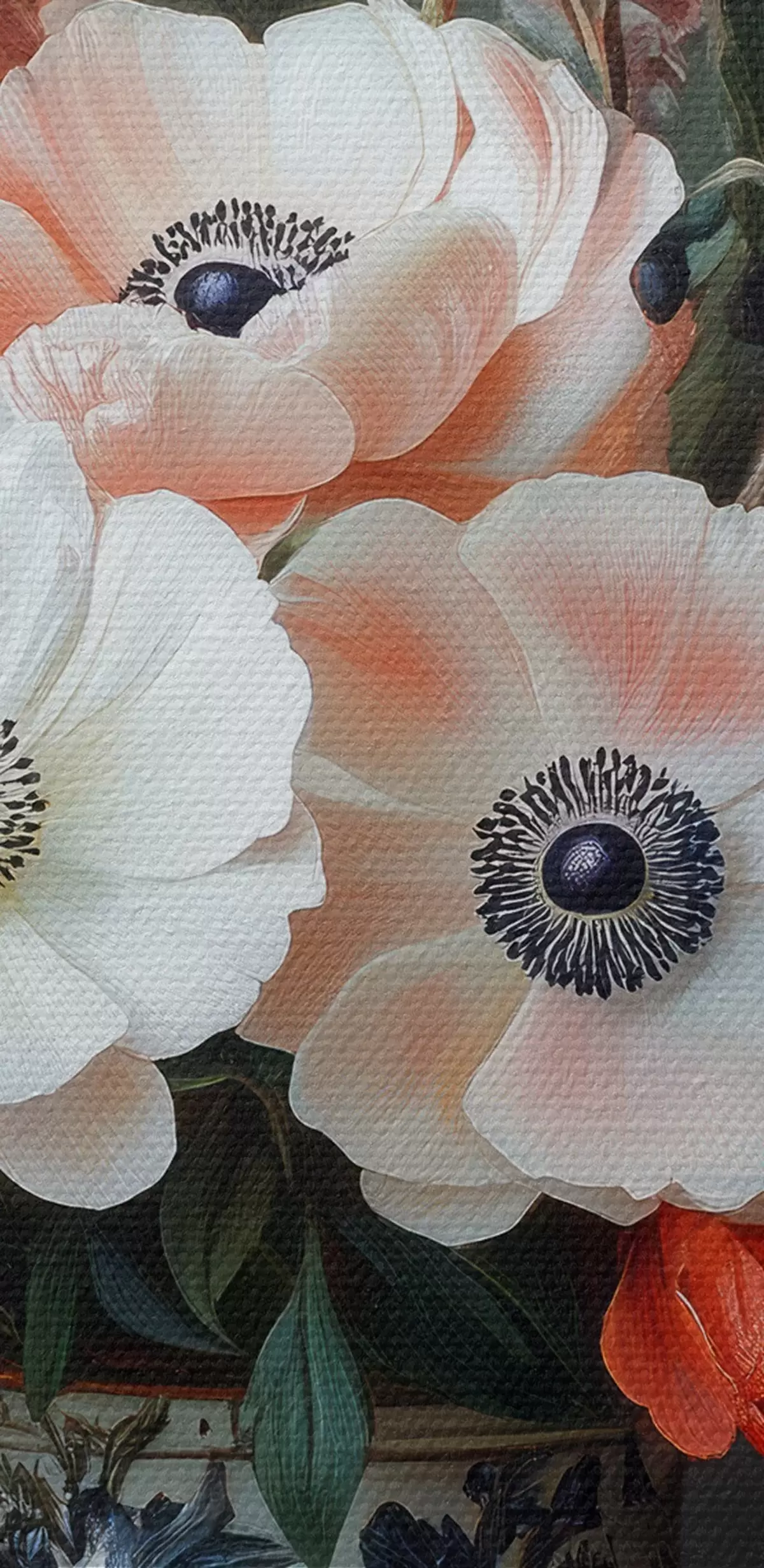 Drei Materialtypen stehen zur Verfügung: Economic Canvas - ein dichtes und haltbares Material für den Digitaldruck, identisch mit Malerleinwand, wasserfeste Oberfläche, realistische Wiedergabe von Details, mittelkörniges Material. Premium Canvas - die Textur ähnelt der einer Malerleinwand (verwobene kleine Fäden). Weiche, detaillierte Wiedergabe des Bildes auf einer matten Oberfläche. Eco-Premium - hochwertiges Gewebe aus 100% Baumwolle. Dank der natürlichen Baumwollfasern ist das Material langlebig und verschleißfest. Hervorragende Farbwiedergabe und Detailtreue.